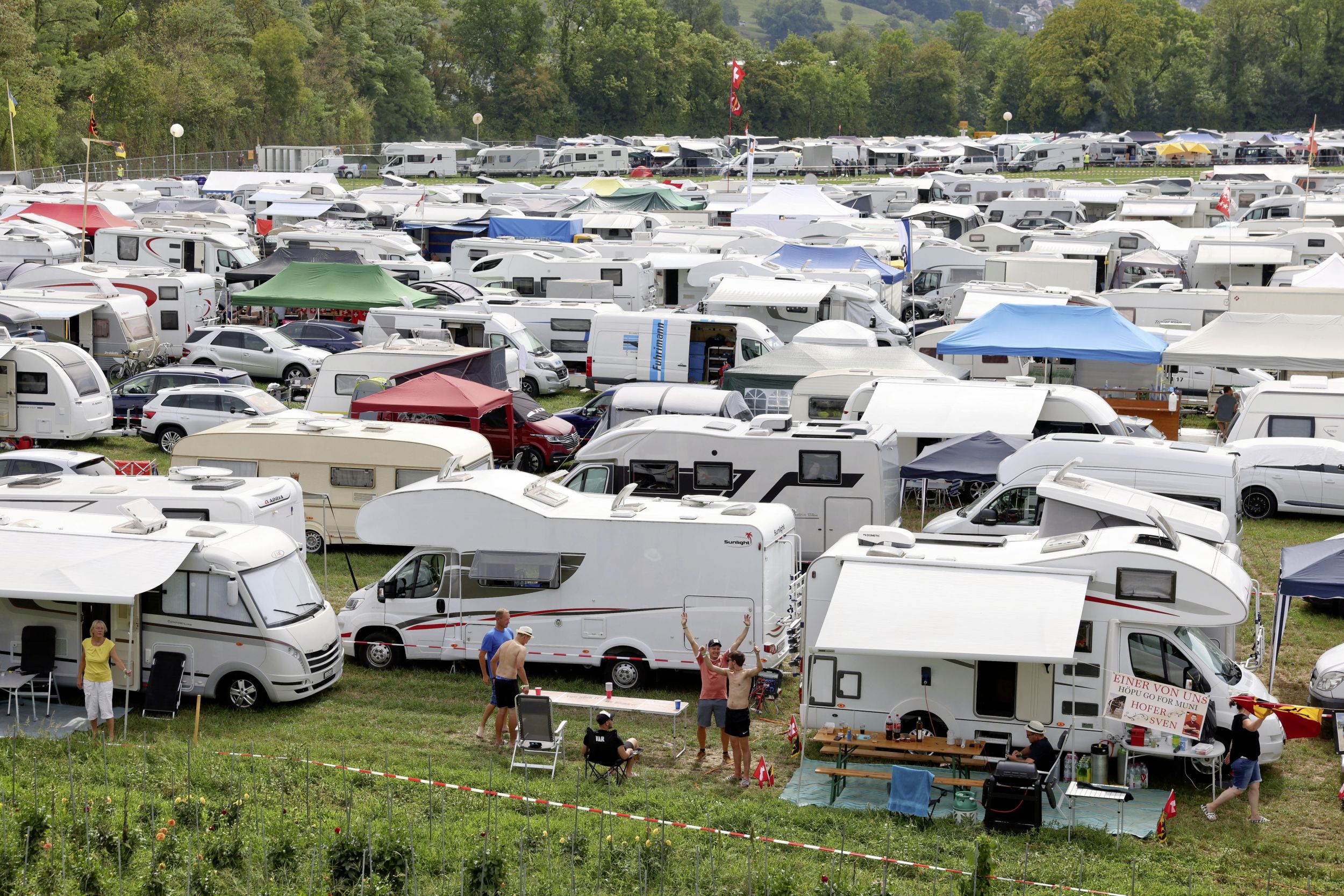 Stephan Burgunder, Gemeindepräsident des Austragungsorts, machte bei seiner Ansprache keinen Hehl daraus, dass Pratteln BL «fernab von Kühen, Käse und Bergidylle» liege. Dennoch wolle man sich voller Stolz präsentieren. Als Sinnbild dafür liess er das Wappentier der Gemeinde über den Schlossgarten fliegen – eigentlich ein Adler, es dürfte sich aber um einen Falken gehandelt haben.