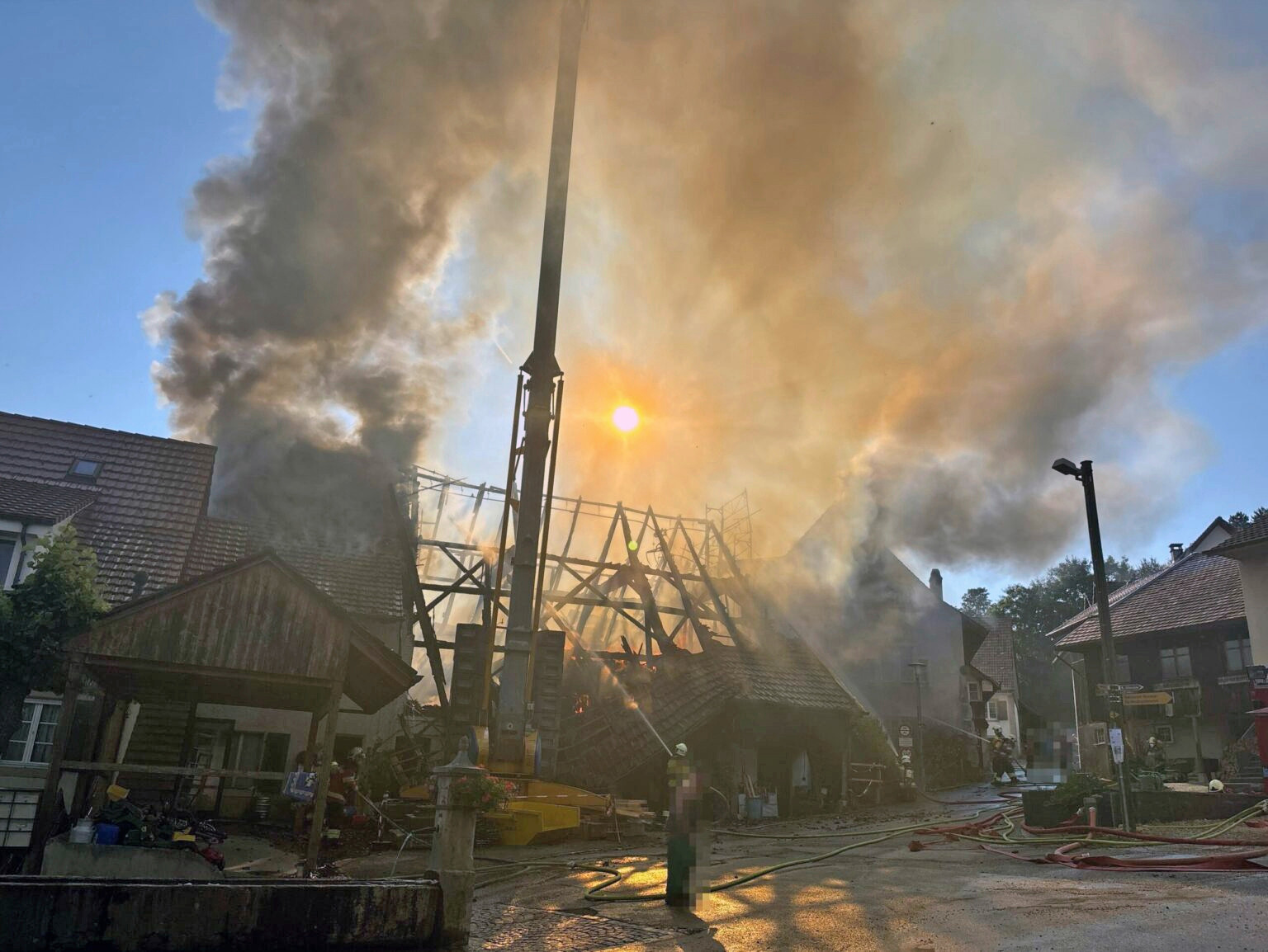 Das Feuer im Innern des Ökonomieteils wurde beim Einbringen von Heu mit einem Heugebläse ausgelöst. Dabei kam es zu einem unbemerkten Funkenwurf, der den Brand verursachte. Hinweise auf Fahrlässigkeit oder eine vorsätzliche Handlung gibt es laut Polizei keine.