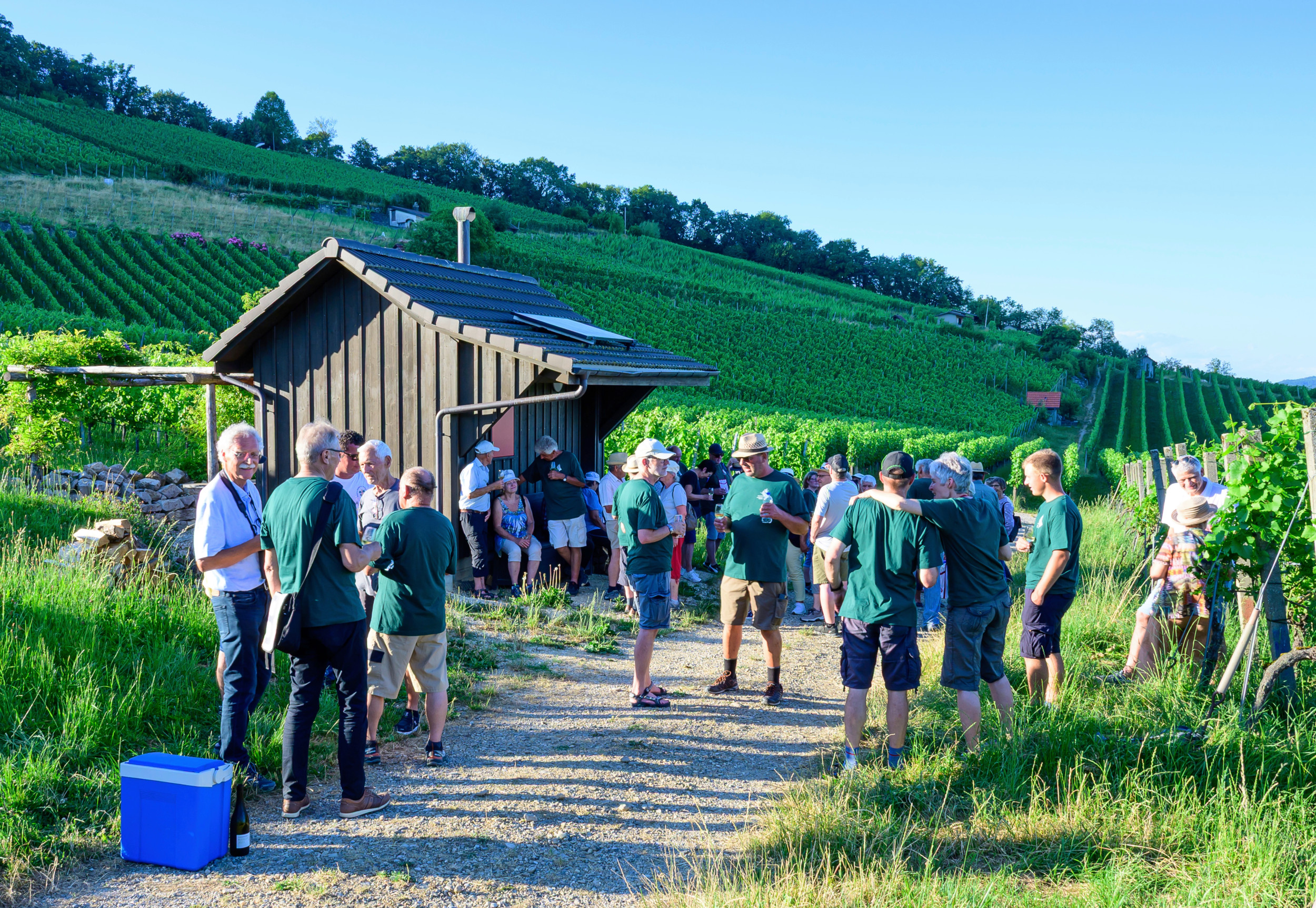 Der Verein der Reb- und Weinfreunde Schinznach, dem auch Ausserkantonale angehören, organisierte kürzlich eine Weindegustation mitten in den Weinbergen. Wie immer endete der originelle Event mit dem Bräteln von Würsten und angeregten Gesprächen.
