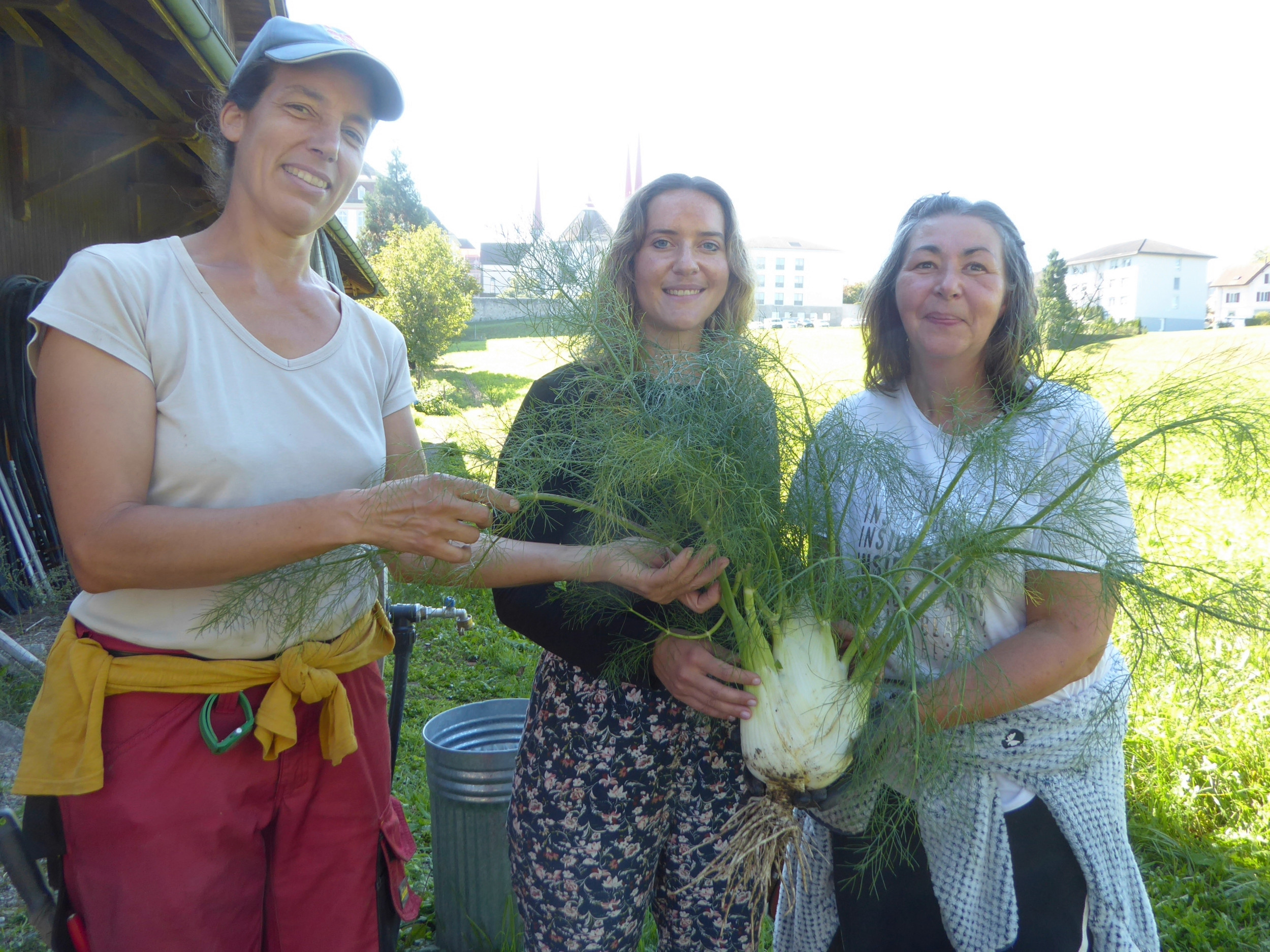 Dabei ist mittlerweile die Kaffeepause während des Vormittags genauso Teil der Routine. Ein weiterer fixer Termin findet jeden zweiten Dienstagnachmittag statt: Dann werden Setzlinge angeliefert. Der Garten besteht aus zwei Teilen. Dieses Jahr wachsen neben der denkmalgeschützten Scheune einige Gemüse und viele Blumen, während im grösseren Feld neben einem Bach verschiedene Kohlarten, Kürbisse, Zucchetti und vieles mehr gedeihen.