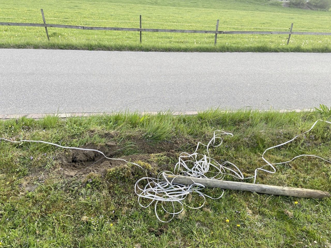 Gemäss Polizeiangaben fuhr die Unbekannte kurz nach 19 Uhr von Seon in Richtung Schafisheim. In einer Linkskurve geriet das Auto aus noch unbekannten Gründen von der Strasse ab und mähte dabei rund 50 Meter Weidezaun um.