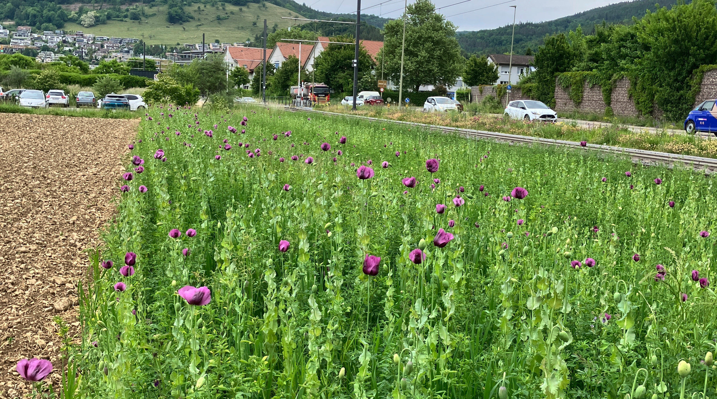 Das Mohnfeld von Dieter Weber in der Nähe der Waldenburgerbahn-Station vor der Ernte