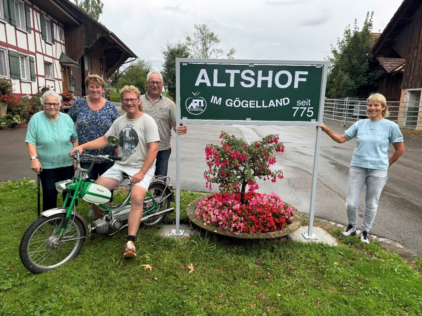 Im dritten Landwirtschaftsbetrieb lebt seit zehn Jahren das Ehepaar Annemie und Etienne Straumann mit den Söhnen Cornel, Kilian und Ueli. Auch sie fühlen sich wohl am Nordabhang des Ottenbergs. Mit einem kleinen Fest am kommenden Sonntag, 14. September, wollen die Bewohnerinnen und Bewohner von Altshof ihr Jubiläum zusammen mit dem sechsten, von Roman Stengele organisierten, «Gögelländer Töfflitreffen» feiern.