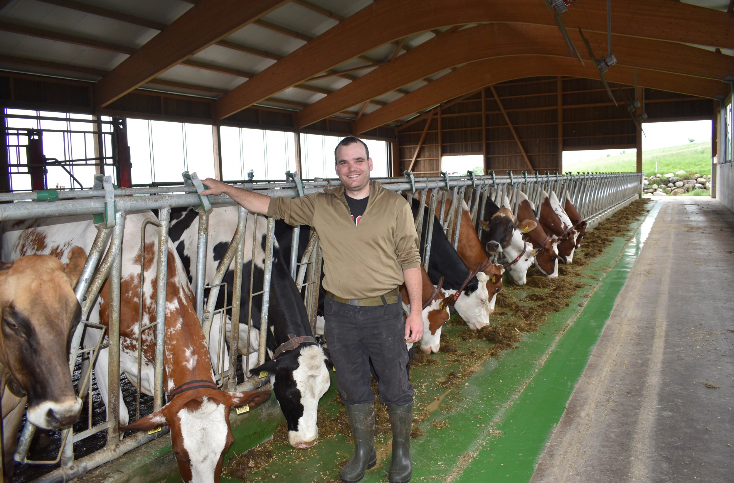 Marco Kronauer kümmert sich im neuen Laufstall ums Milchvieh.