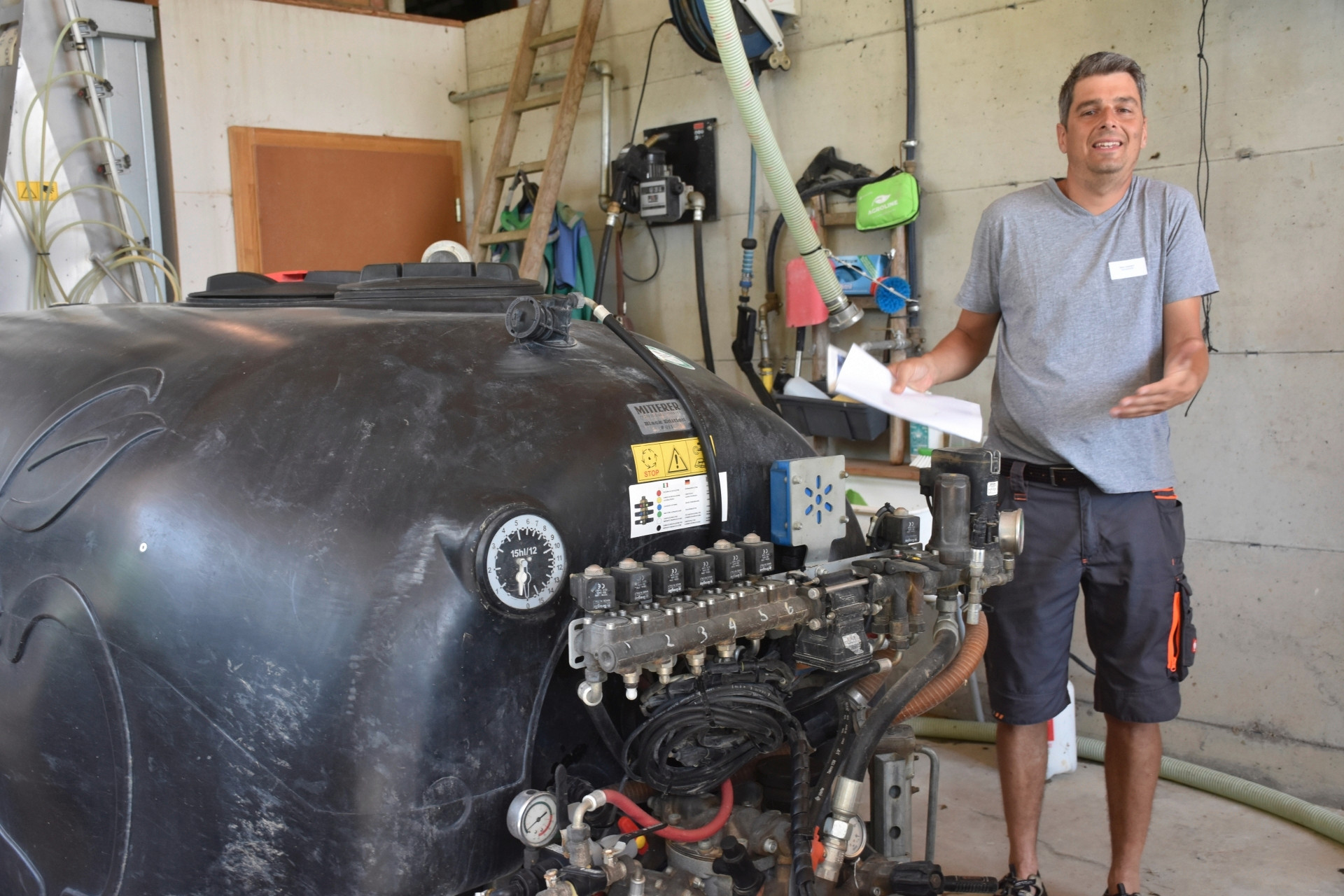Die Erfahrungen und Resultate aus dem Ressourcenprojekt werden künftig in Beratung, Bildung und Vollzug einfliessen. Reto Leumann zeigte seinen neuen Wasch- und Befüllplatz mit Schlammsammler, auf dem das gesammelte Regenwasser wiederverwertet wird. Das PSM ist in einem abschliessbaren Container untergebracht, und der Dieseltank steht in einem feuersicheren Nebenraum.