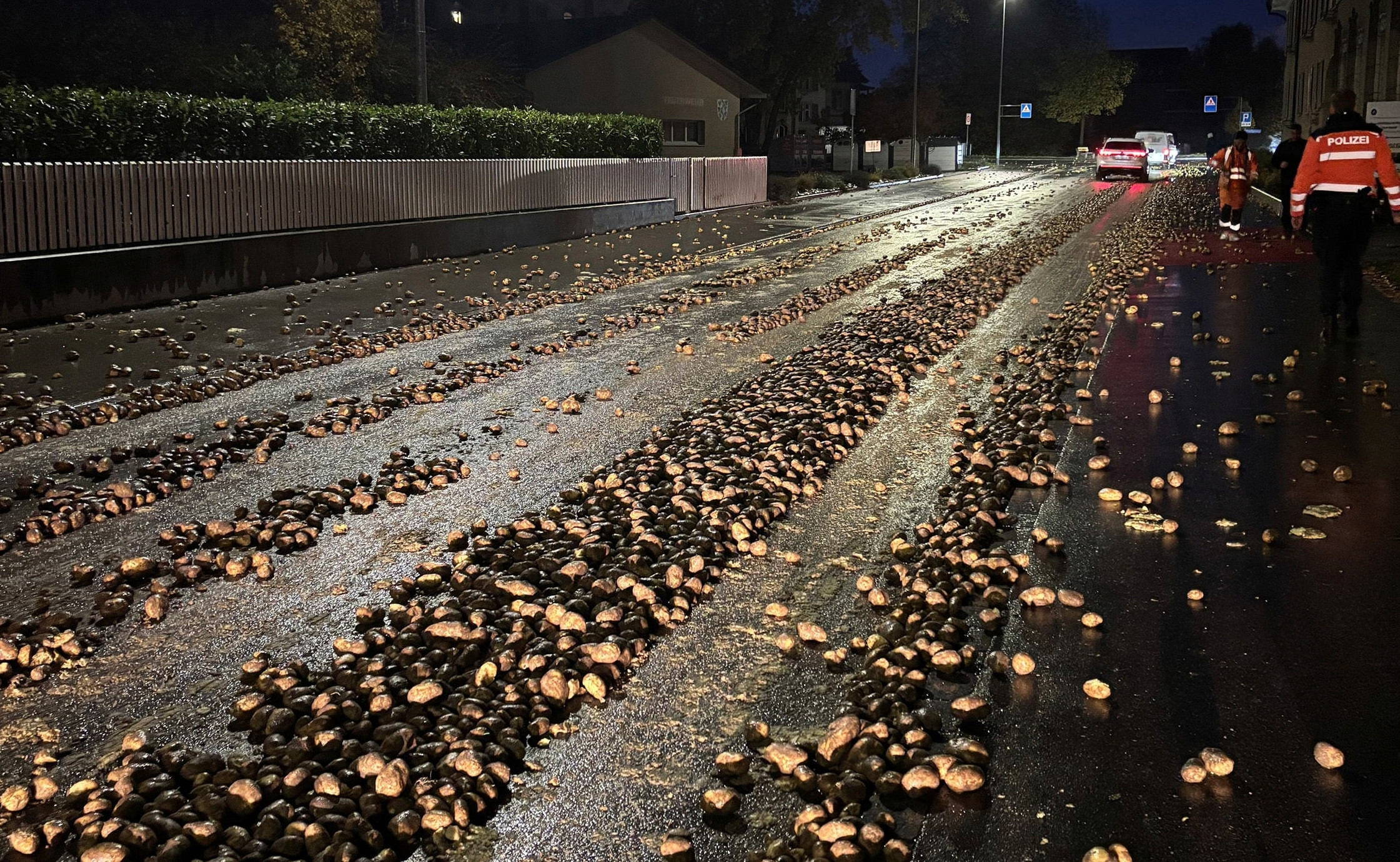 Am Mittwochmorgen gegen 7.15 Uhr war ein Traktorfahrer mit zwei Anhängern auf der Freiestrasse in Richtung Deucherstrasse unterwegs. Wie die Kantonspolizei Thurgau mitteilt, öffnete sich auf Höhe der katholischen Kirche der Heckladen des hinteren Anhängers, worauf mehrere Tonnen Kartoffeln auf die Fahrbahn fielen. Der 54-Jährige bemerkte den Ladungsverlust zunächst nicht und fuhr weiter. Er meldete sich rund eine Stunde später bei der Kantonspolizei Thurgau.