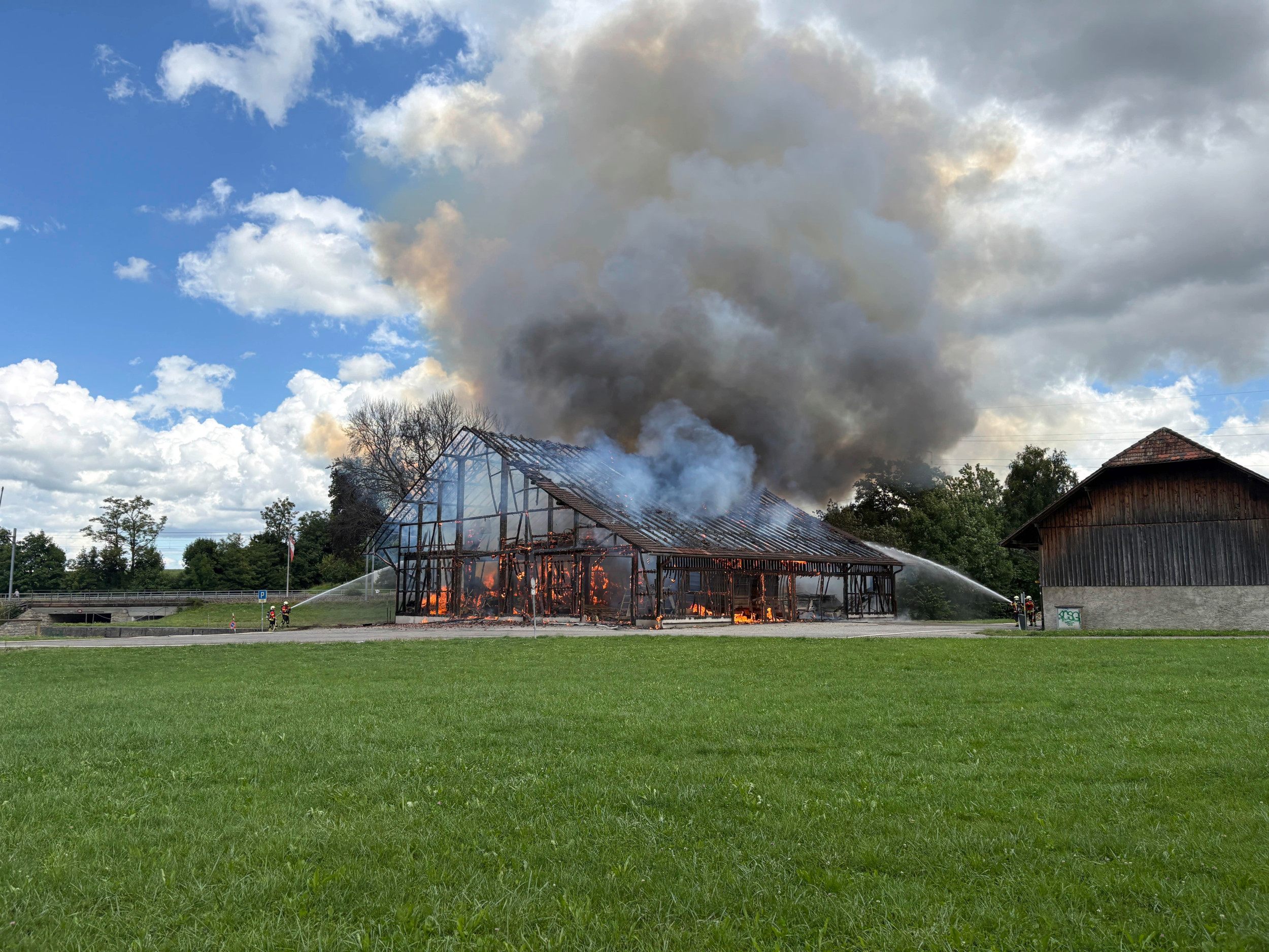 Gegen 13.30 Uhr flammte ein 58-Jähriger bei der Scheune Unkraut ab. Dadurch entstand in der Scheune ein Feuer. Als die Feuerwehr vor Ort eintraf, stand das Gebäude bereits in Vollbrand.