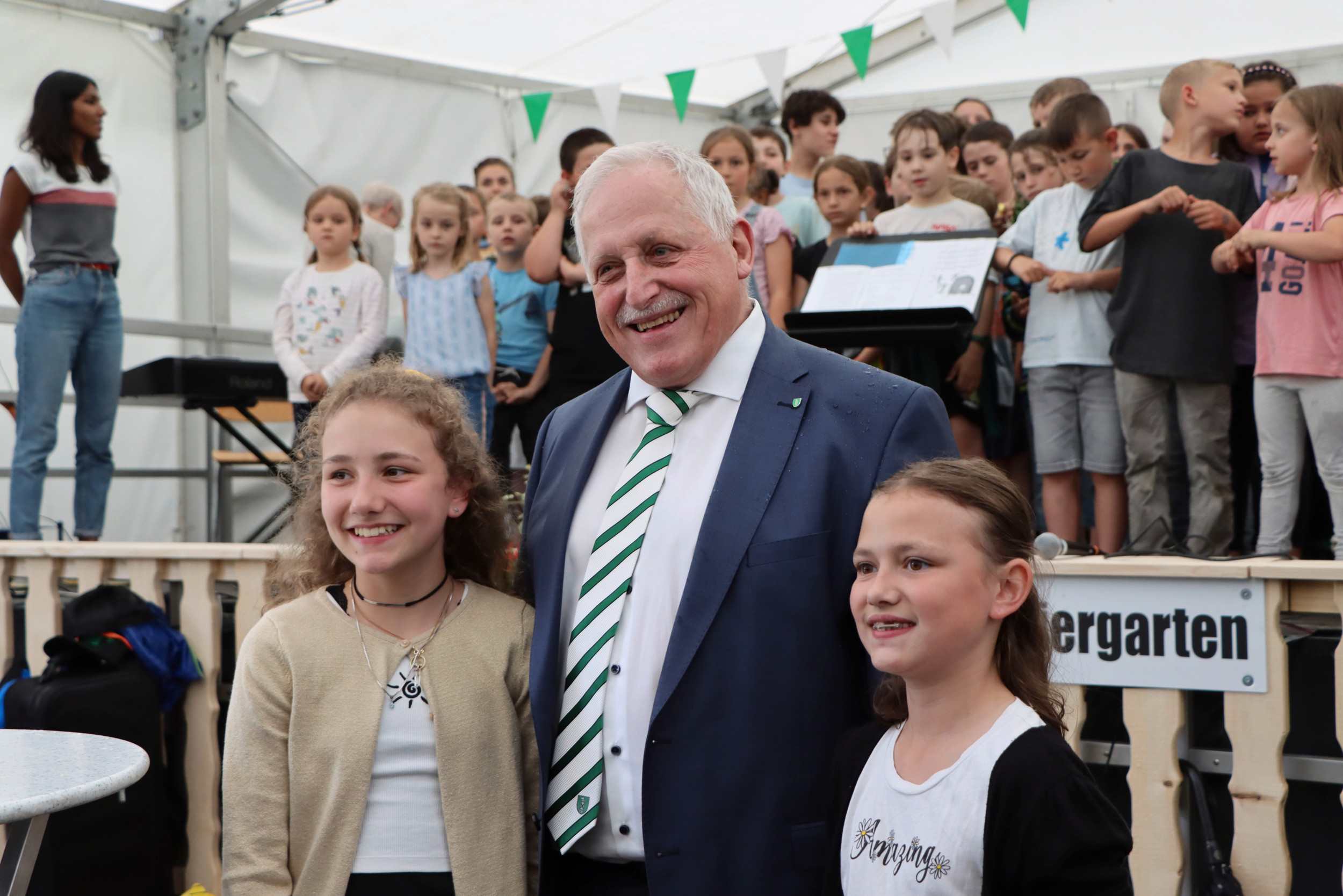 Begrüsst wird der frisch gekürte Kantonsratspräsident musikalisch von den jüngsten Einwohnerinnen und Einwohnern der Gemeinde. Die Primarschülerinnen und -schüler singen von ihrem «Ei-Ei-Ei-Eichberg». Zwei Mädels stellen sich rechts und links zum «höchsten St. Galler». Es sind Lou und Mia. Die beiden Enkelkinder von Walter Freund. Wer weiss, vielleicht werden sie dereinst auch politisieren. Ihr Urgrossvater – also der Vater von Walter Freund – politisierte für die FDP im St. Galler Kantonsrat.