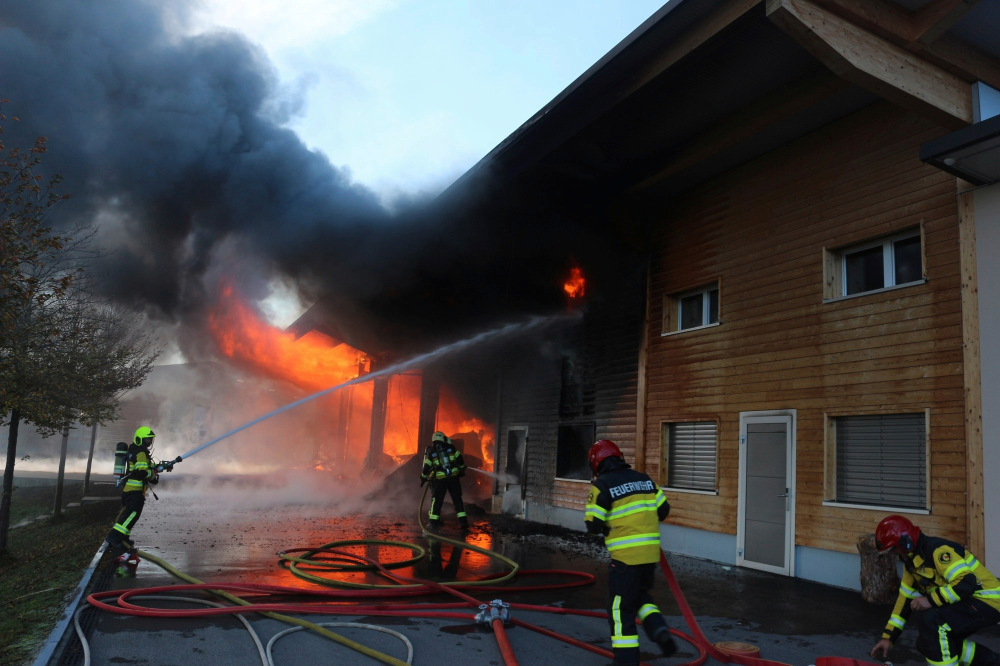 Beim Eintreffen der Feuerwehr stand die Werkstatt bereits in Vollbrand. Die Einsatzkräfte schützten die angrenzenden Gebäude und die Hühnerställe vor einem Übergreifen der Flammen. Die Löscharbeiten gestalteten sich als schwierig.