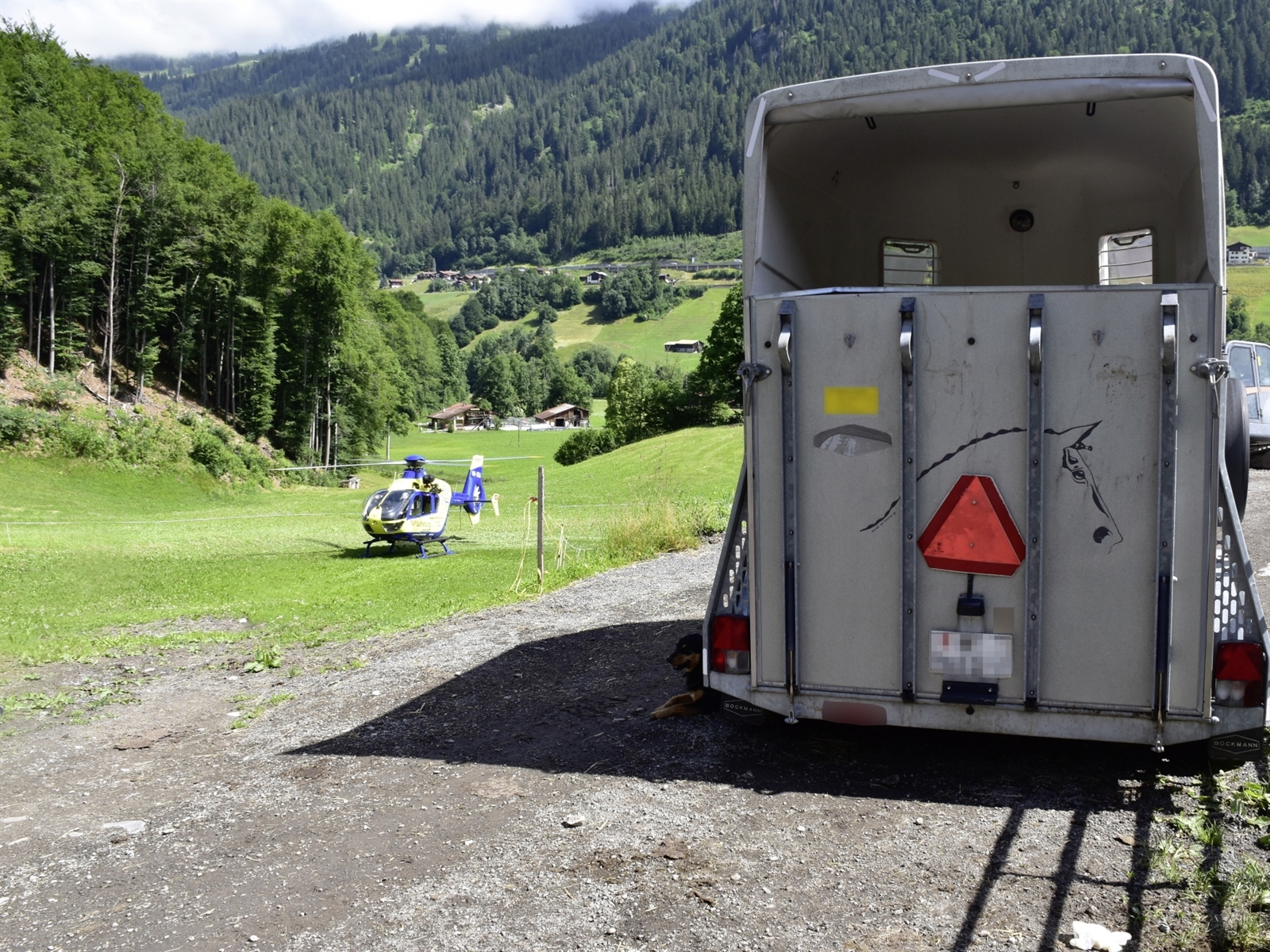 In Serneus GR hat sich am Dienstagvormittag eine 26-Jährige beim Entladen einer Kuh schwere Verletzungen zugezogen. Die Frau wurde unter der Ladeklappe eines Tiertransportanhängers eingeklemmt.
