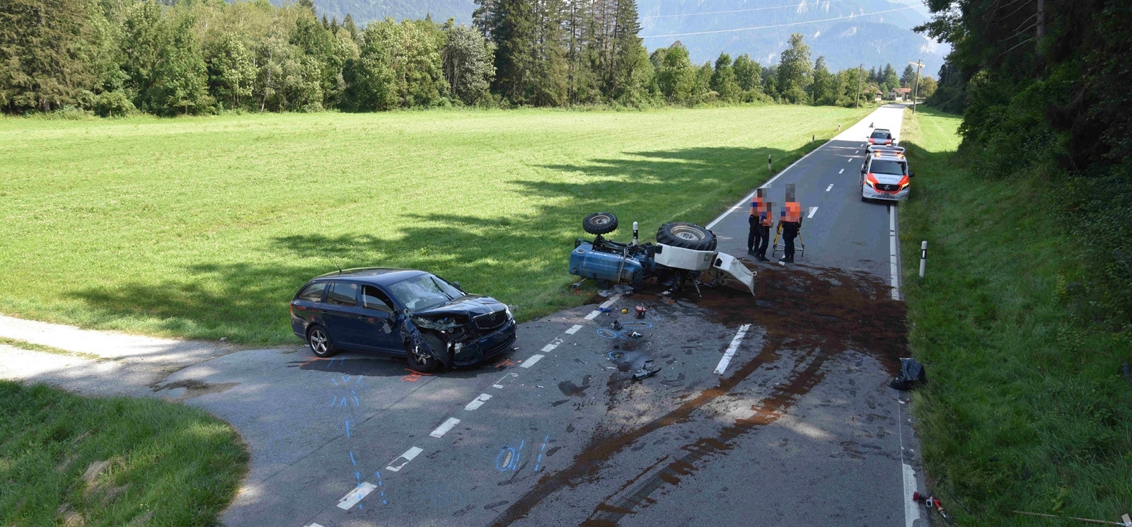 Ein Zusammenstoss zwischen den beiden Fahrzeugen liess sich nicht mehr vermeiden. Die Kollision war so heftig, dass der Traktor auf die Seite kippte. Dabei wurde der 60-jährige Fahrer eingeklemmt. Die Einsatzkräfte hoben den Traktor mit einem Stapler an, um den Mann zu retten.
