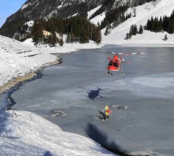 Die Rega-Einsatzzentrale schickte einen Helikopter der Basis Mollis GL, der sich auf dem Rückflug vom Kantonsspital St. Gallen befand, zum Seealpsee. In kürzester Zeit war die Crew vor Ort. Sie beschloss angesichts der prekären Situation, die beiden Verunfallten direkt an der Rettungswinde aus dem Wasser zu ziehen.