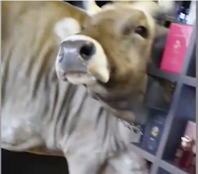 «Ich habe sie an der Seite gestreichelt und wollte sie so eigentlich davon abhalten, in das Geschäft zu laufen», erzählte eine Mitarbeiterin gegenüber «Blick». Doch das beeindruckte die Kuhdame nicht gross.