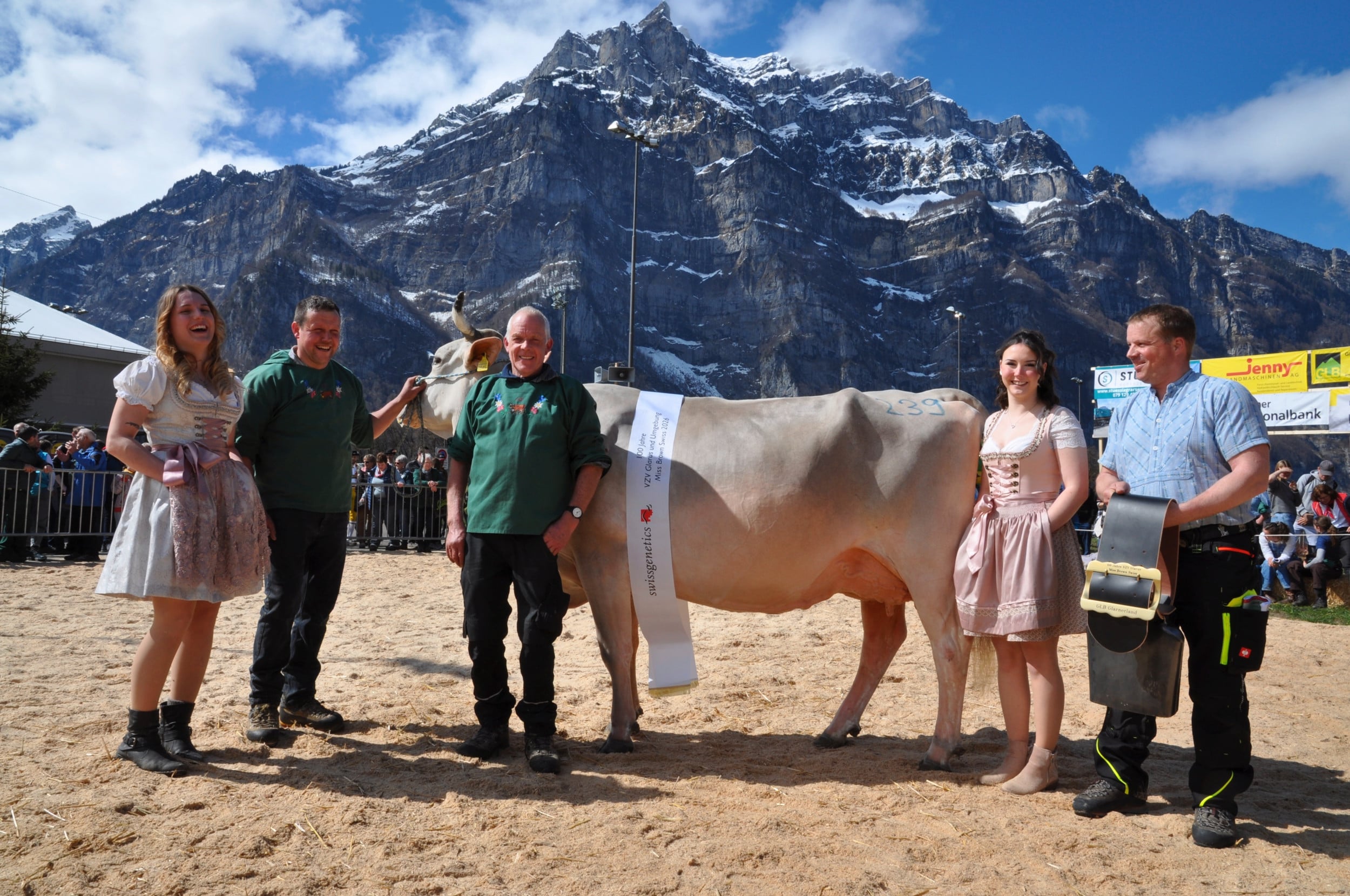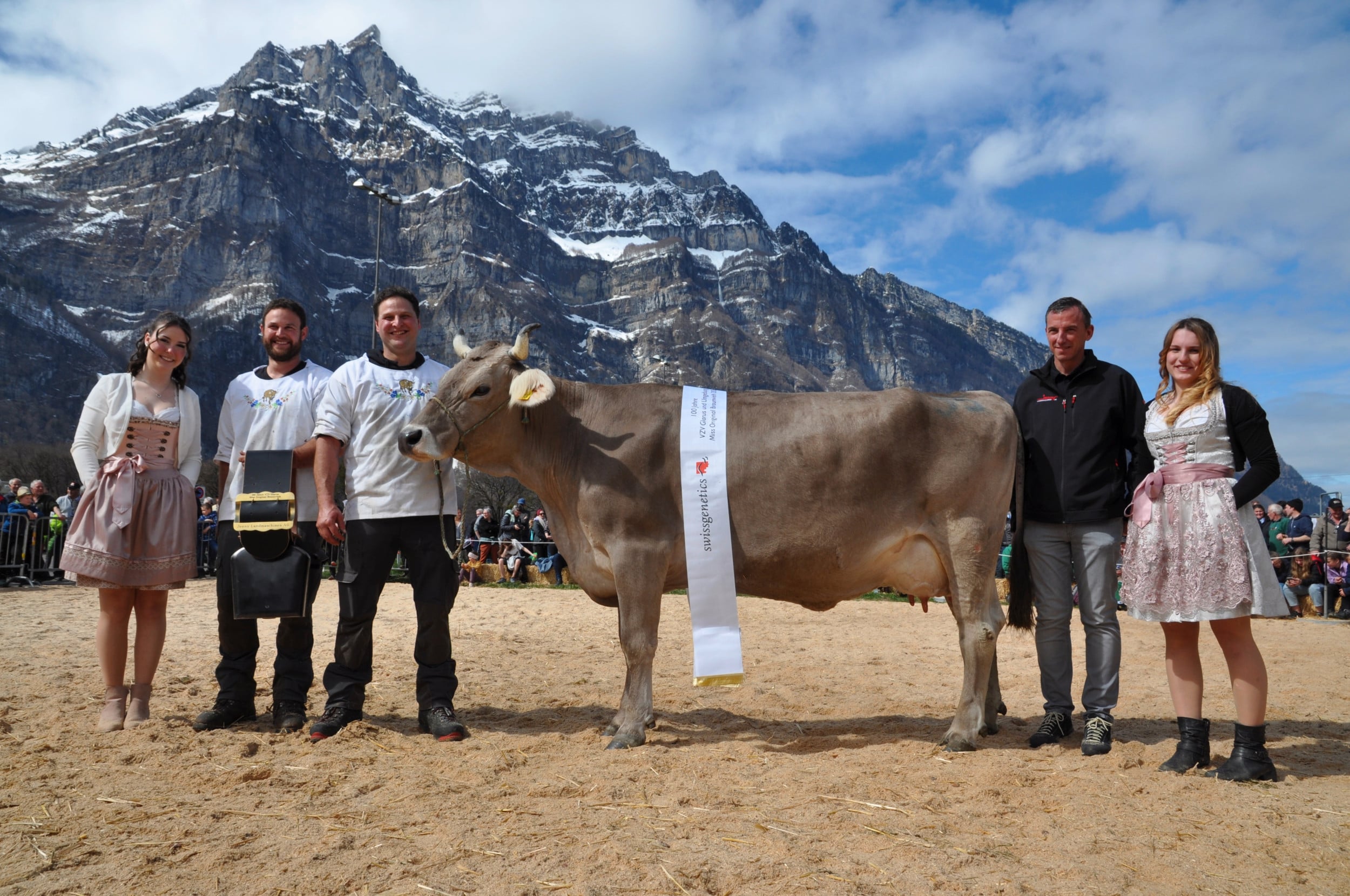 Mit den 100’000er-Kühen stand die 19-jährige Topboy Edelweis von Ruedi Tschudi-Zweifel aus Ennenda im Ring, während unter den sechs Stieren der jüngste gerade 1½ Jahre alt war. Die beste Genetik bei den Original Braunen lieferte Arcas Karla von Samuel und Peter Horner, Glarus. Bei den Brown-Swiss-Tieren holte sich Brice-ET Joana von Sepp Weber-Giger, Netstal, diesen Titel. Wirtschaftlichkeitsstar wurde Vital Gina, ebenfalls von Horners aus Glarus.