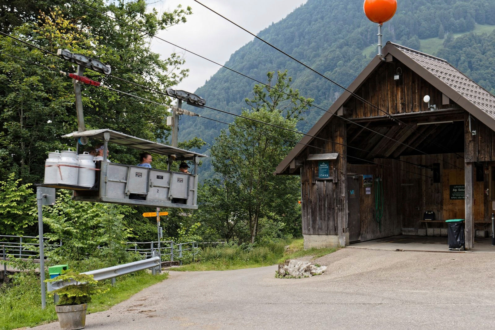 Die Selunbahn dient seit 1911 dem Transport von Material und der Beförderung des Alp-Personals. In Spitzenzeiten werden mehr als 3000 Liter Milch transportiert.