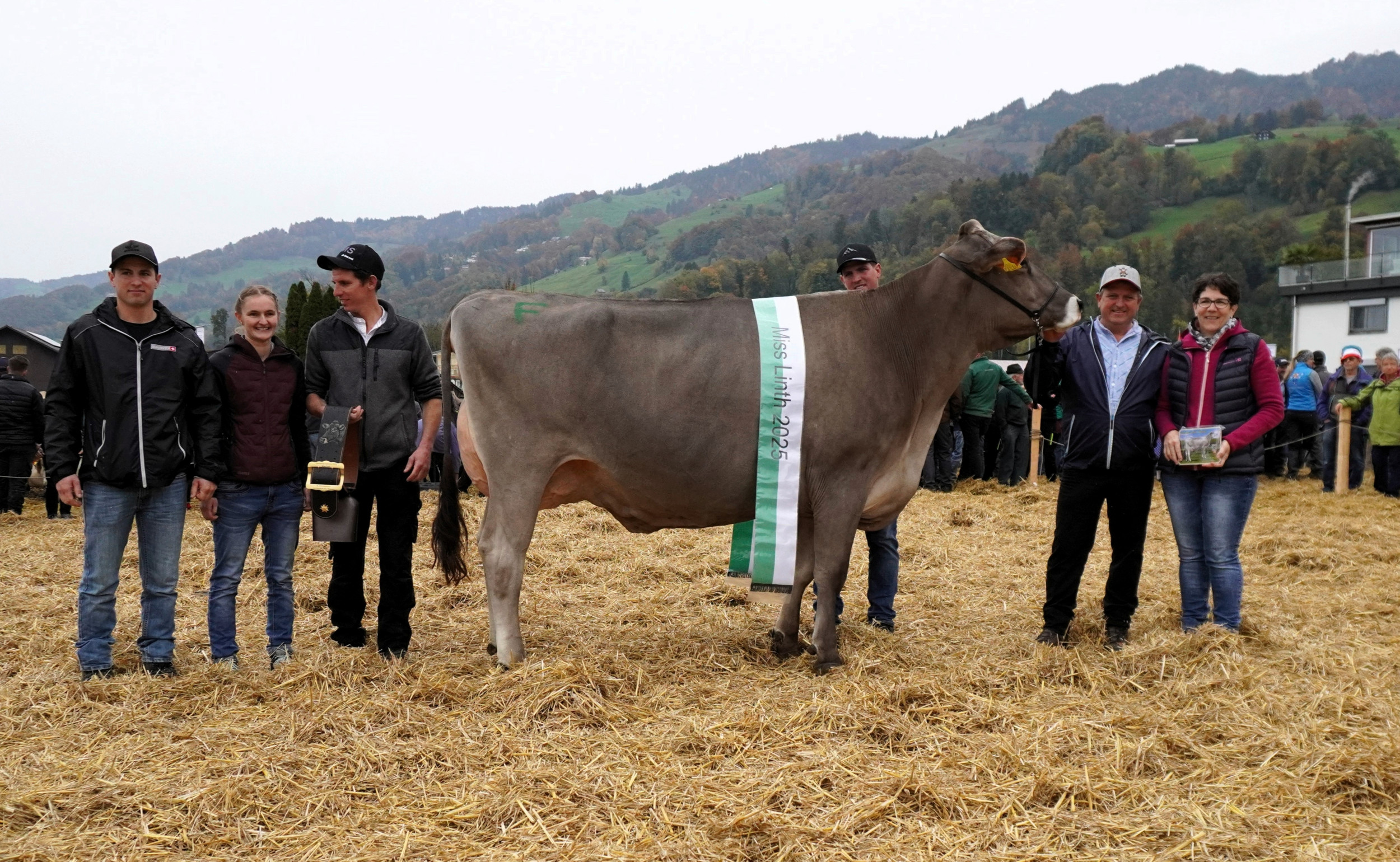 Ebenfalls im Rennen die noch aktuelle Miss Linth Pete Ricola. Die sechsjährige Kuh kam als Titelverteidigerin, denn sie gewann bereits 2024 den Miss-Linth-Titel. Gleich drei Gemeinden schickten ihre Vize-Missen, was daran lag, dass sich die amtierenden Schönheiten infolge einer Unpässlichkeit vertreten liessen.