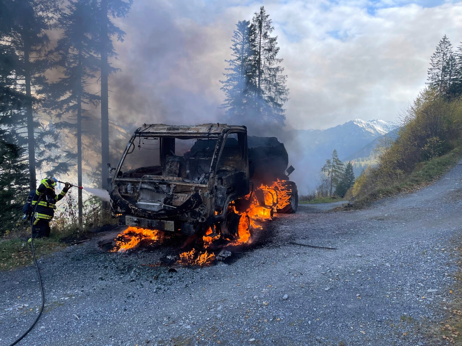 An einer weniger steilen Stelle sei er angehalten und habe unter der Fahrerkabine ein Feuer festgestellt. Er brachte sich sowie seine Tochter sofort in Sicherheit und alarmierte die Einsatzkräfte über den Notruf.