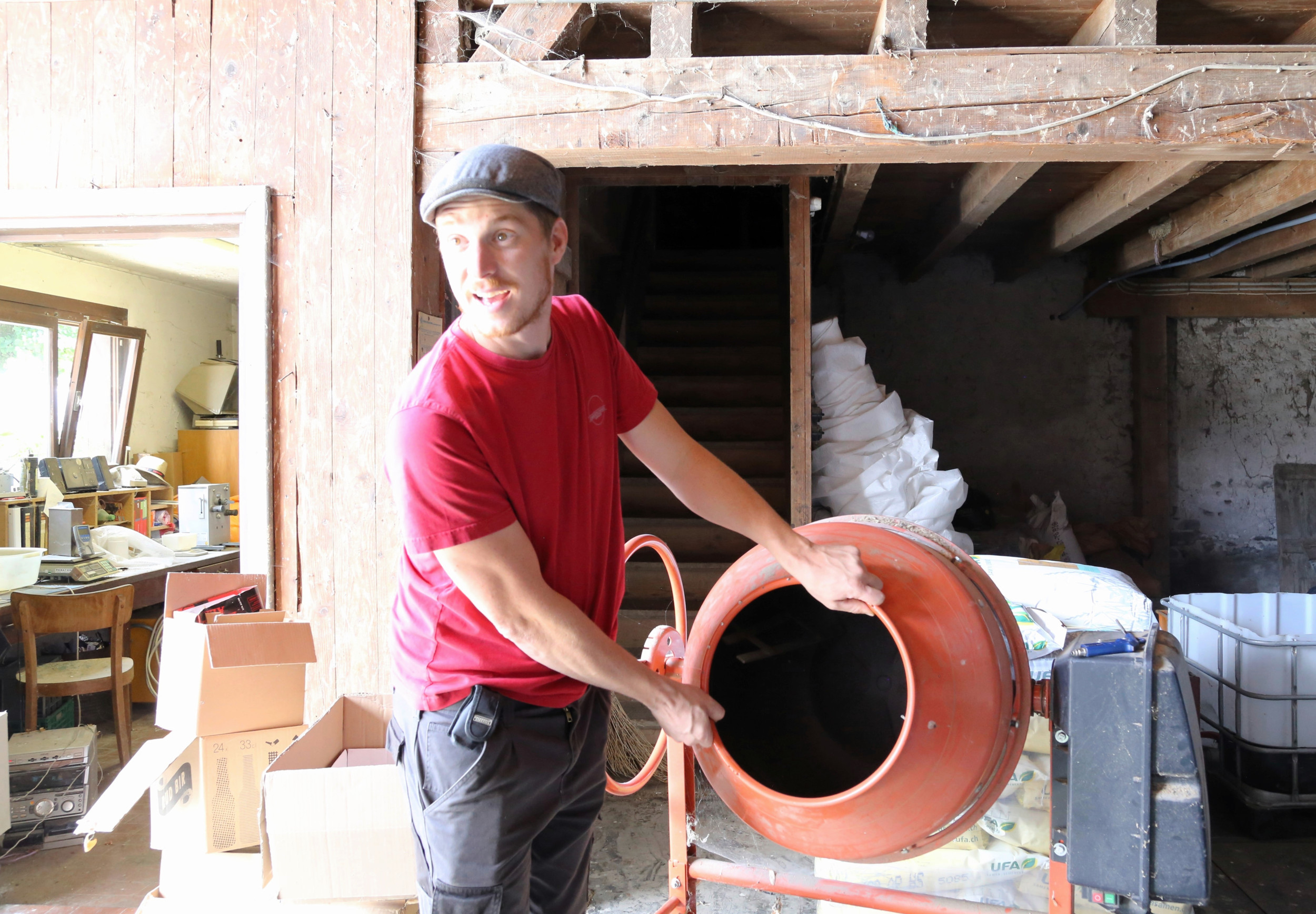 Die ersten Mälzversuche haben Adrian Feitknecht und Manuel Bolliger in diesem Betonmischer gemacht.
