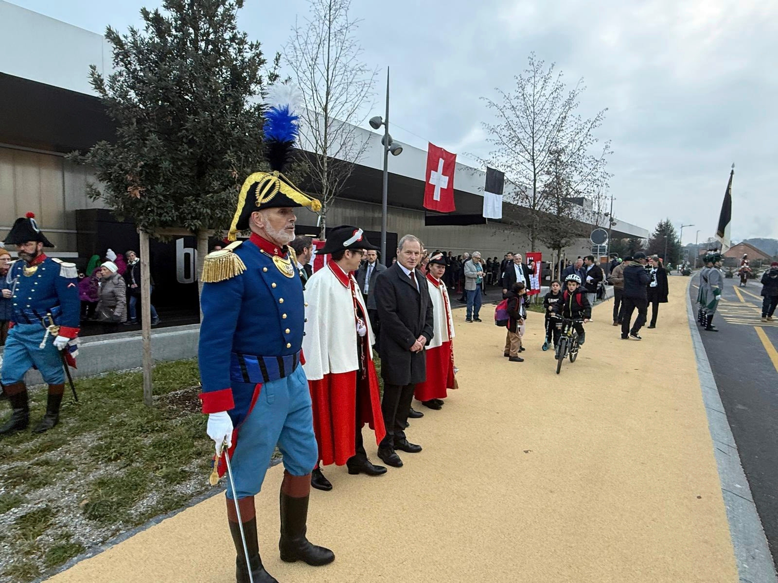 Unter den Gästen in Romont befanden sich SVP-Bundesrat Albert Rösti, der Freiburger Staatsrat in corpore, die Freiburger Politiker in Bern sowie der Generaldirektor der SBB, Vincent Ducrot, ebenfalls ein Freiburger. Die Bevölkerung kam zu einem Aperitif zusammen. Der Präsident des Nationalrats nahm dort inmitten von Mitbürgern am Umtrunk teil.