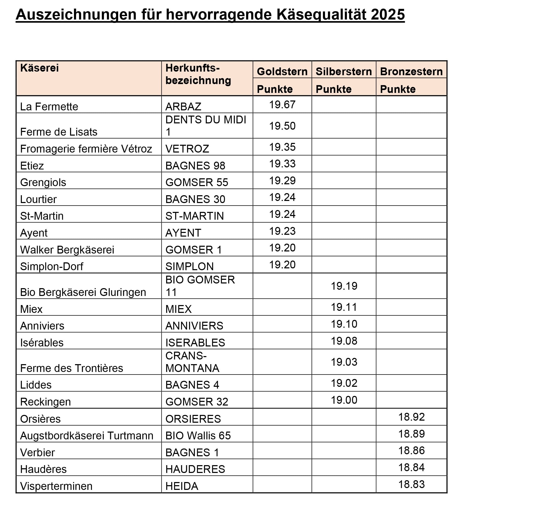 «2025 war erneut ein qualitativ hervorragendes Jahr», schreibt die Sortenorganisation. Am 3. März 2026 erhielten in Châteauneuf VS 22 Käsereien und 43 Alpkäsereien die Qualitätsauszeichnung. «Dieser Anstieg der Anzahl der Auszeichnungen zeigt, dass die Qualität stimmt und sogar noch besser ist als in den Vorjahren», heisst es weiter.