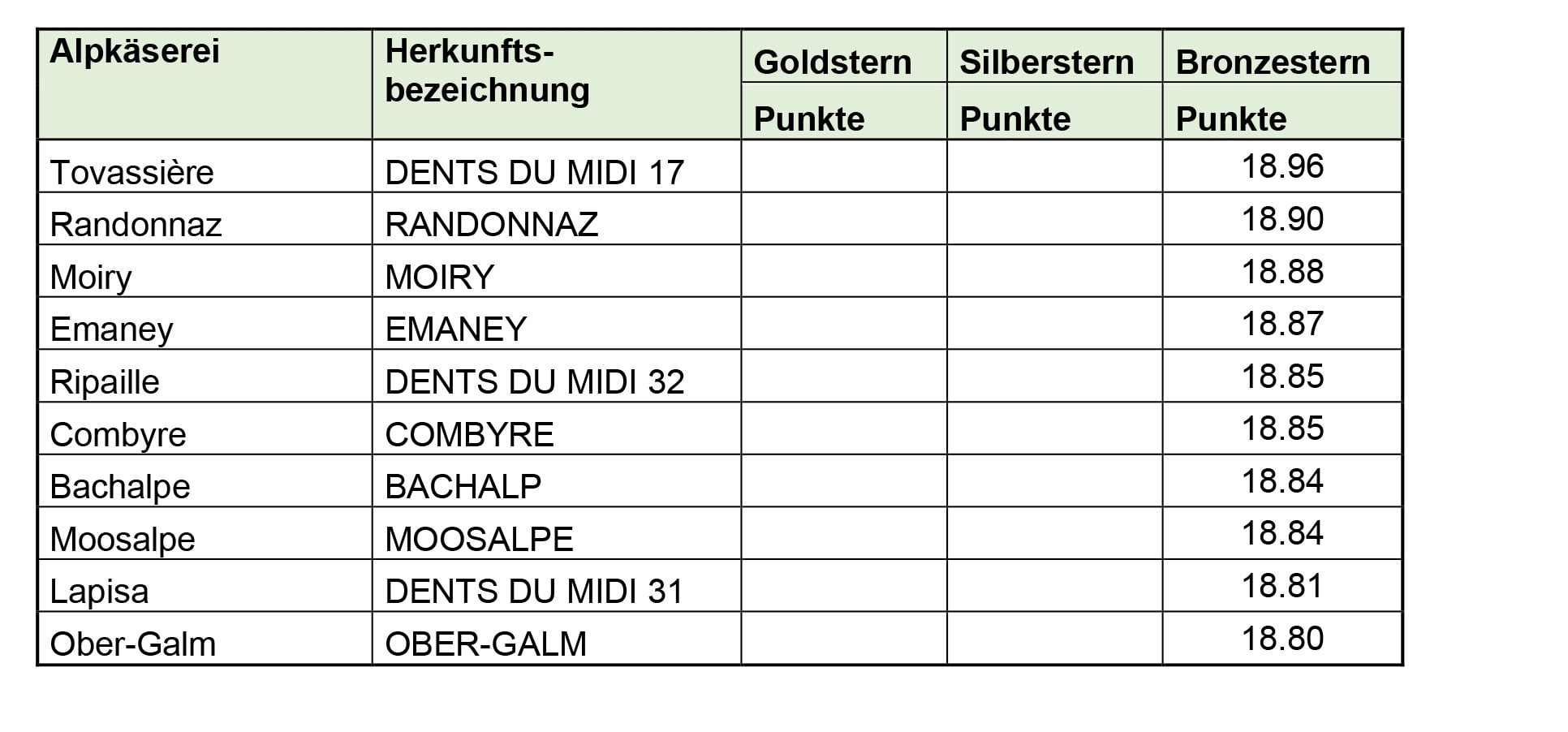 Ausgezeichnet werden diejenigen Käsereien, die im Laufe des Jahres oder der Sömmerungssaison durchschnittlich 18,8 Punkte oder mehr von maximal 20 Punkten erreichen.