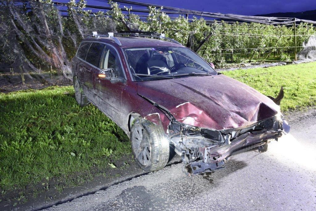 Sein Wagen durchbrach zuerst einen Weidezaun. Bäume einer Obstanlage haben das Auto dann abrupt abgebremst. Das Auto wurde in der Frontpartie massiv beschädigt. Es entstand ein Schaden von rund 14'000 Franken.