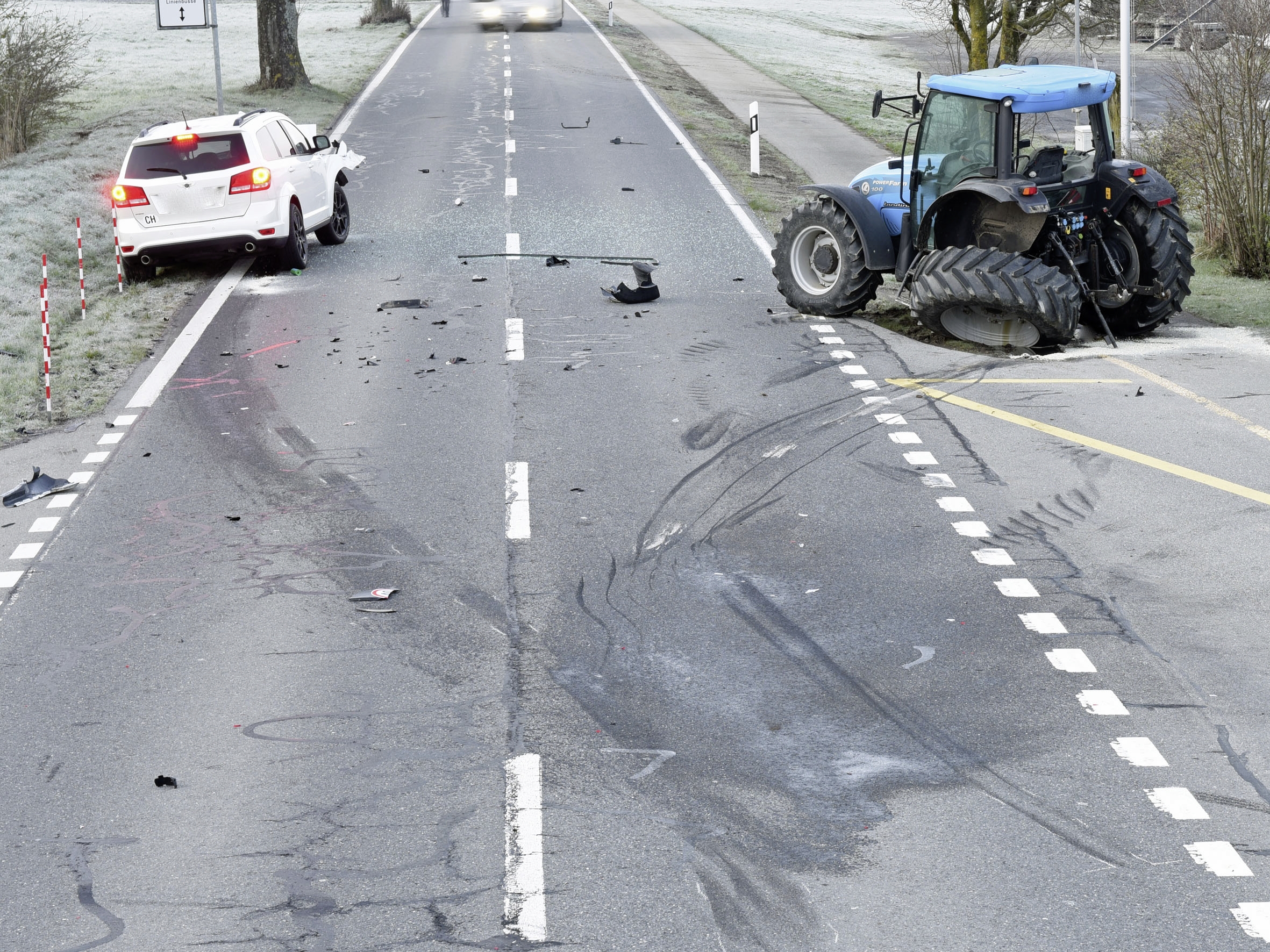 Gemäss Polizeiangaben war ein Traktorfahrer gegen 5.30 Uhr von Beromünster in Richtung Neudorf unterwegs. Ein Auto fuhr in gleicher Richtung hinter dem Zugfahrzeug her.