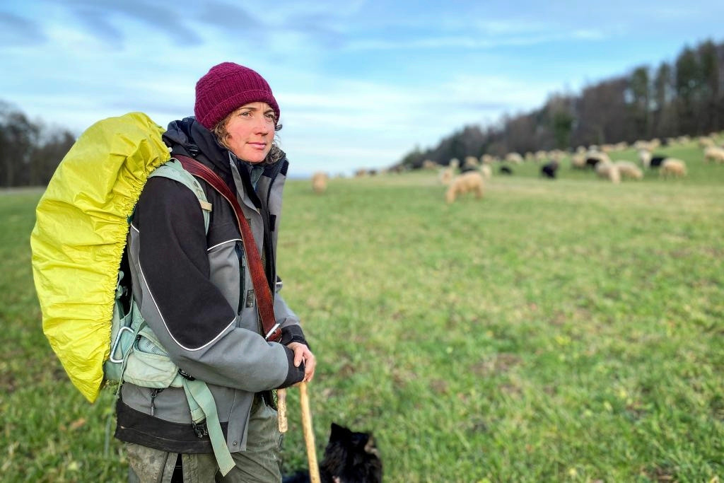 Sarah Müri ist mit der Wanderherde im Kanton Basel-Land unterwegs.