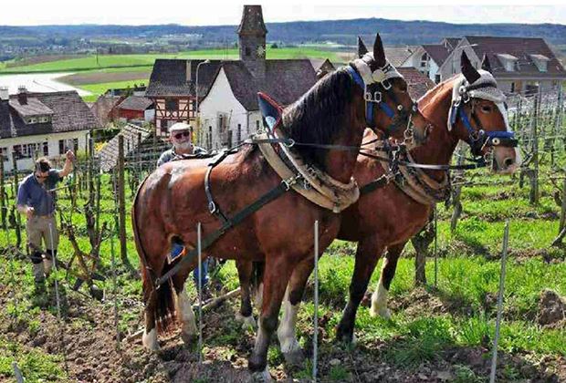 Sein Ziel ist es, einen Drittel der Rebfläche – also zwei Hektaren – mit dem Pferd zu bearbeiten.