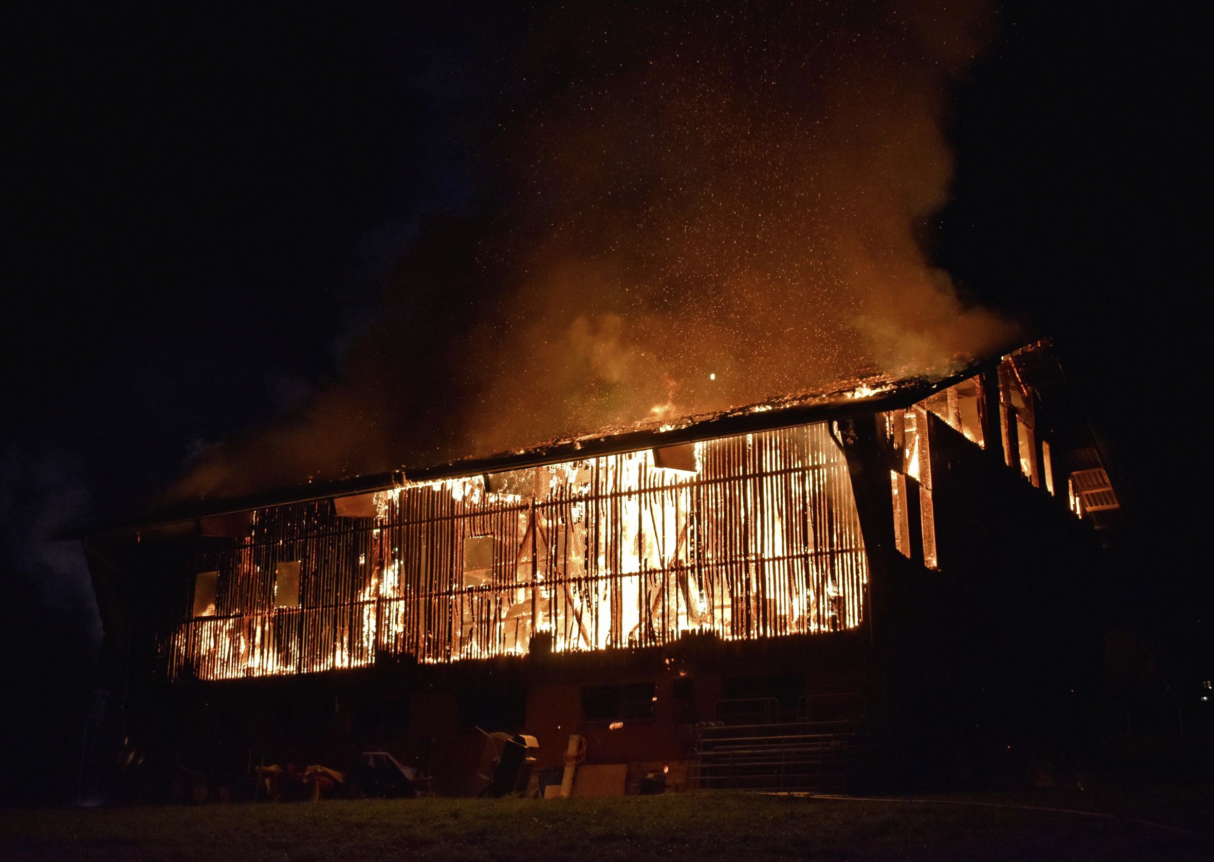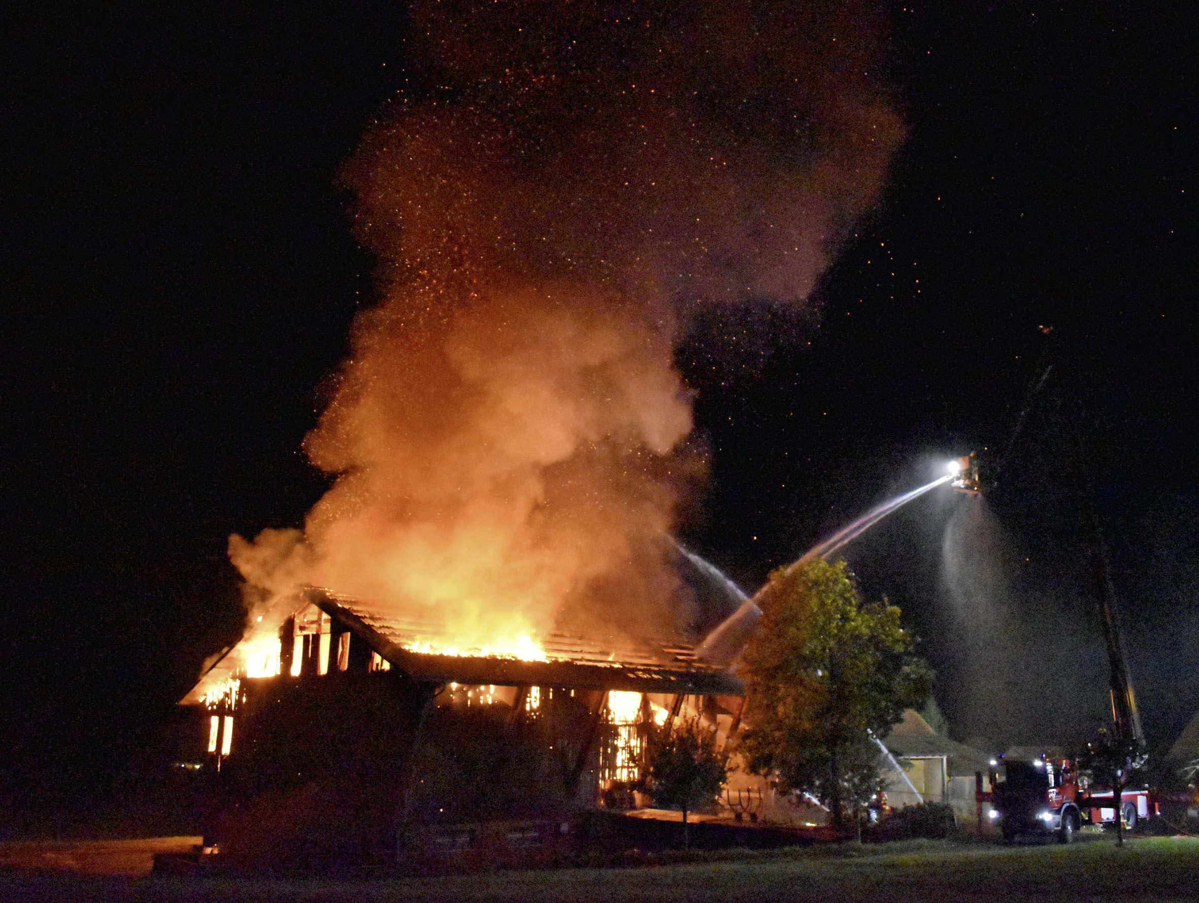 Im Innern des Gebäudes befanden sich keine Tiere. Die Scheune war nicht mehr zu retten und brannte nieder. Personen kamen nicht zu Schaden.