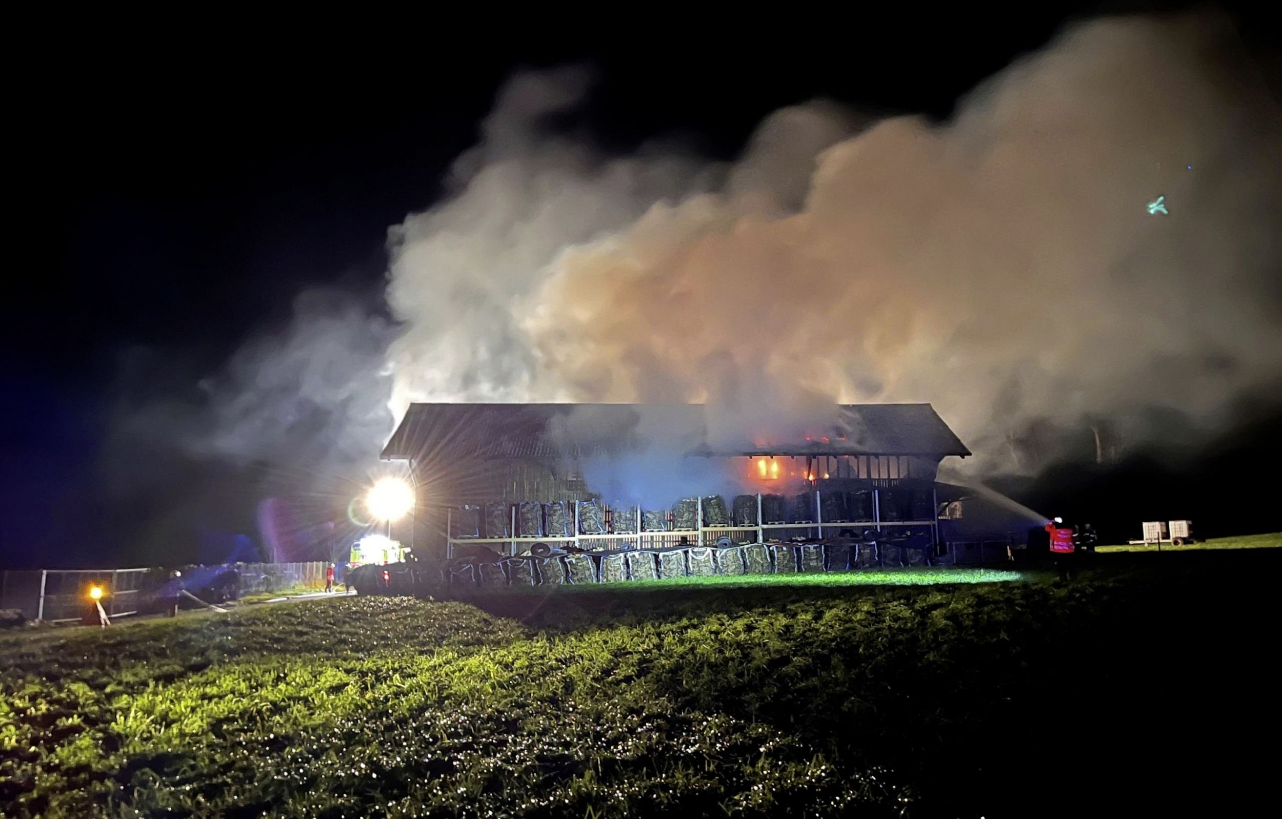 Der Brand wurde gegen 0.30 Uhr von einer Autofahrerin gemeldet. Als die Einsatzkräfte bei der Scheune am Ortsrand von Rafz eintrafen, drangen bereits Flammen aus dem Gebäudedach.