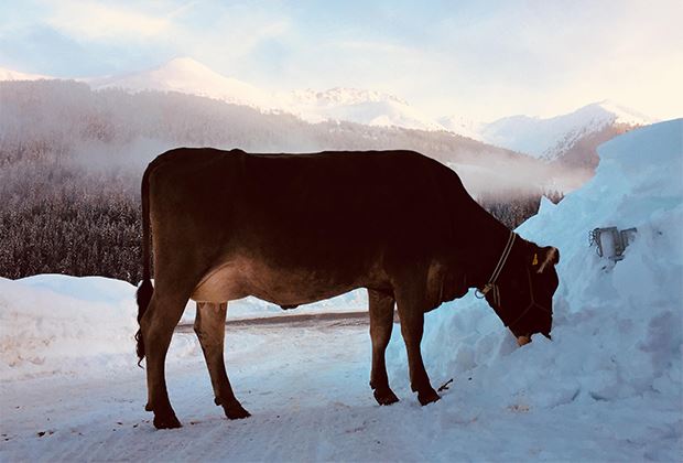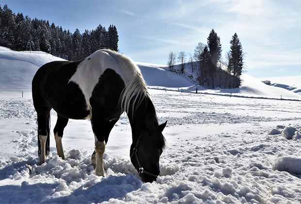 Mit etwas Scharren finden sich auch unter Schnee ein paar saftige Gräser, dazu Sonne und frische Luft..