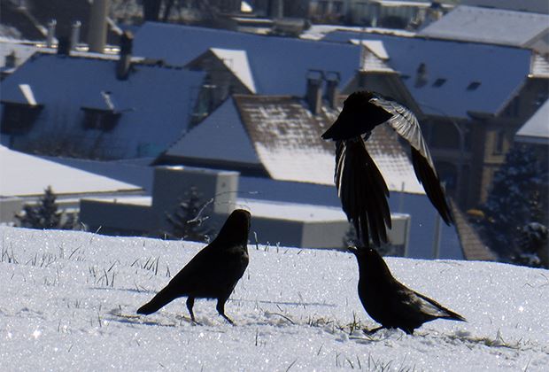 Krähen im Schnee.