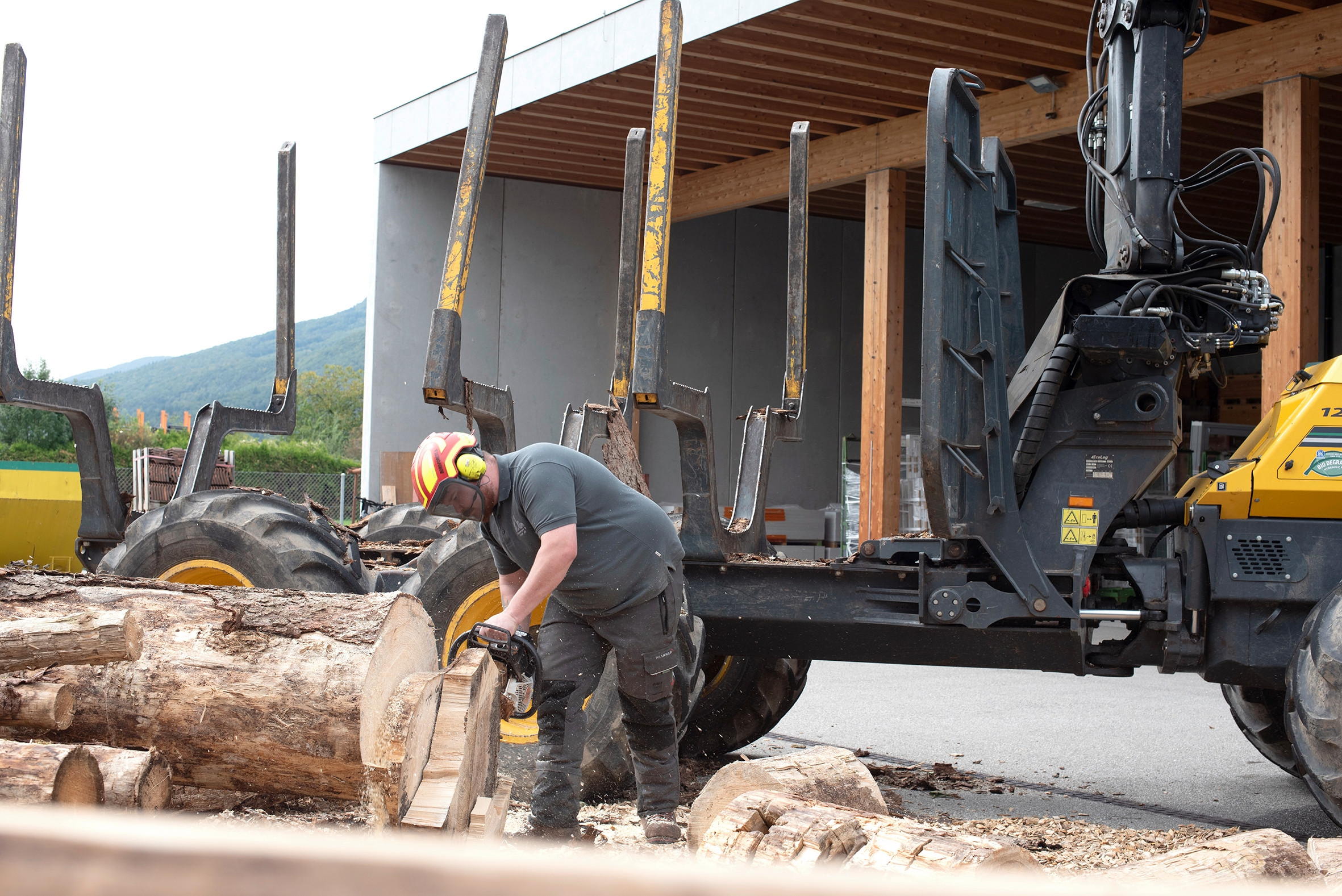 Ob im Forst, in der Zimmerei, der Schreinerei oder auch auf dem Bau: Die Holzbranche bietet zahlreiche Berufe, die Vielfalt und Spannung versprechen. Im Freigelände zeigten Profis des Forstunternehmens Ehrenbolger und Suter AG ihre Arbeit, diese reicht von der Jungwaldpflege bis zur Starkholzernte.
