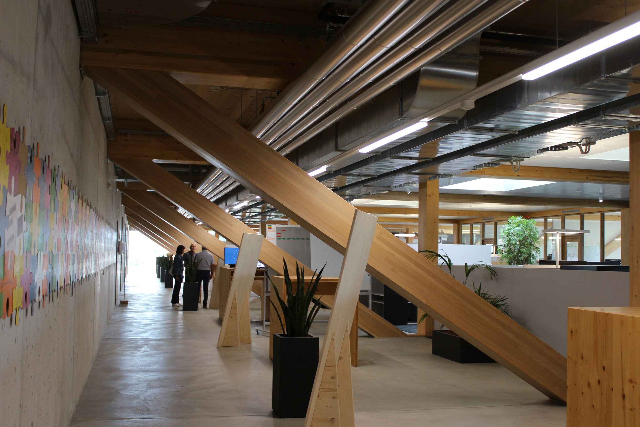 Im Gebäude der Von Rohr Holzbau AG. Holz ist traumhaft schön und heimelig.