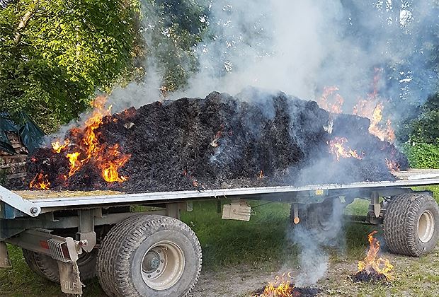 Kurz nach 18 Uhr entdeckte eine Passantin, dass bei einem Unterstand Siloballen brannten. Diese befanden sich auf einem Anhänger.