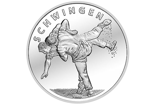 Die Münze zu Ehren des Schwingsports wiederum ist in Silber gehalten und in zwei Versionen mit einer Gesamtauflage von 57'000 erhältlich. Aus dem einstigen «Hosenlupf» habe sich ein «moderner, trainingsintensiver und überaus populärer Wettkampf entwickelt». Mit der Silbermünze eröffnet die Swissmint die Serie «Schweizer Volkssportarten».