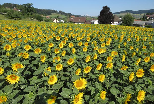 Kaum eine Blume sorgt für derart gute Laune und Sommergefühle wie die Sonnenblume. Derzeit erstrahlen die Felder landauf, landab in leuchtendem Gelb. Aber auch in den Gärten wachsen die schönen Blumen und überragen nicht nur aufgrund ihrer Grösse. Für unseren Bildwettbewerb suchen wir das schönste Bild rund um den faszinierenden Korbblütler.
