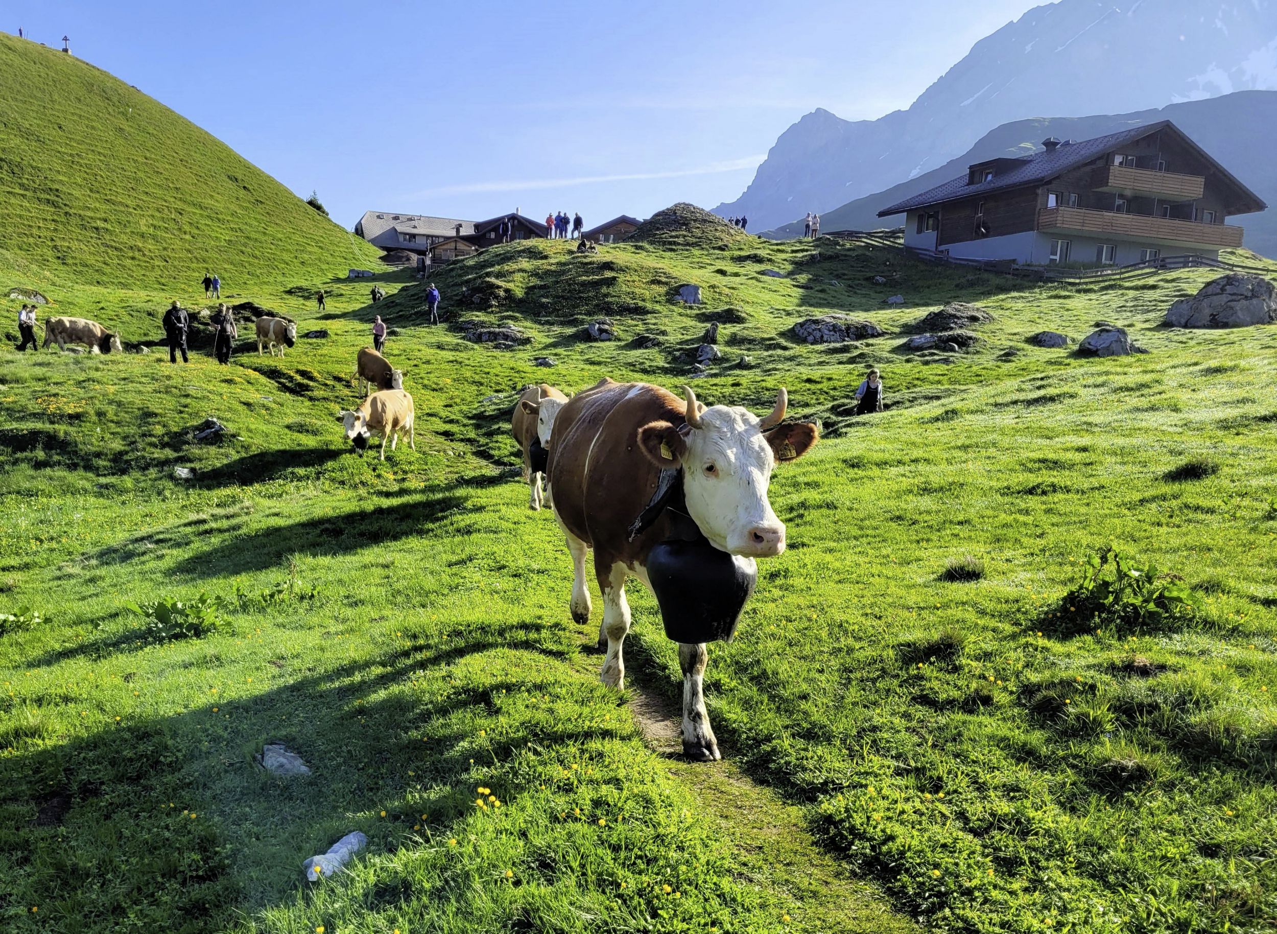 Rund 500 Tiere – Kühe, Rinder und Kälber – kämpften sich einmal mehr die schmalen, felsigen Pfad zur Engstligenalp hoch. 600 Höhenmeter sind dabei auf rund zweieinhalb Kilometern zu bewältigen. Der wohl spektakulärste Alpaufzug der Schweiz war einmal mehr von einem Bilderbuchwetter gesegnet. Vorbei an den beeindruckenden Engstligenfällen und hoch über die rutschigen Schotterwege führte der Weg hoch auf die traumhafte Engstligenalp mit ihren saftigen Wiesen.