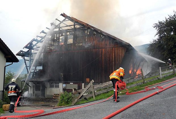 Dank diesen Leitungen konnte ein Übergreifen der Flammen auf das nahe gelegene Wohnhaus verhindert werden. Für den Stall kamen die Löscharbeiten zu spät, dieser brannte fast bis auf die Grundmauern nieder.