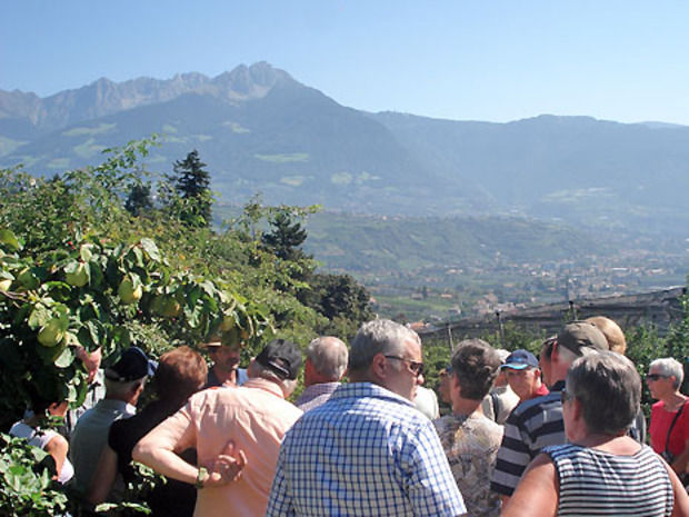 Der vierte Tag begann mit einer Stadt-besichtigung in Meran. Die klimatisch wärmste Stadt des Südtirols ist bekannt für seine heilsame, frische Luft. Danach besuchte die Leser-reisegruppe des "Schweizer Bauer" einen italienischen Obst-produzenten, der über die wirtschaftlichen Probleme der Region erzählte.