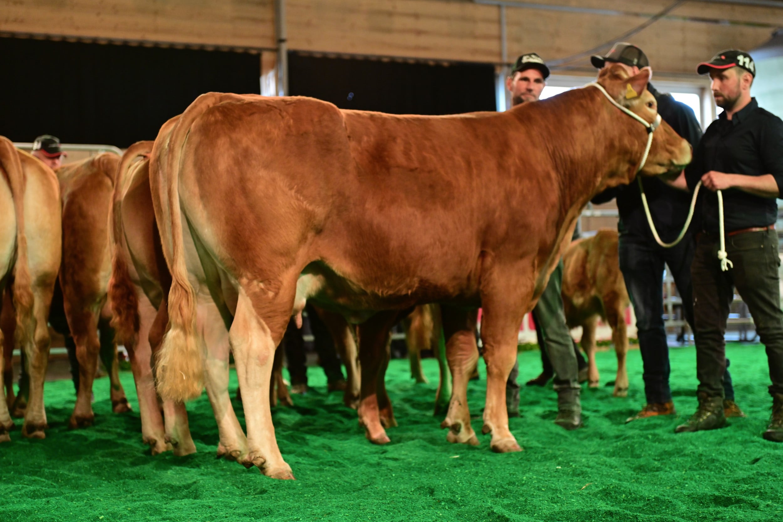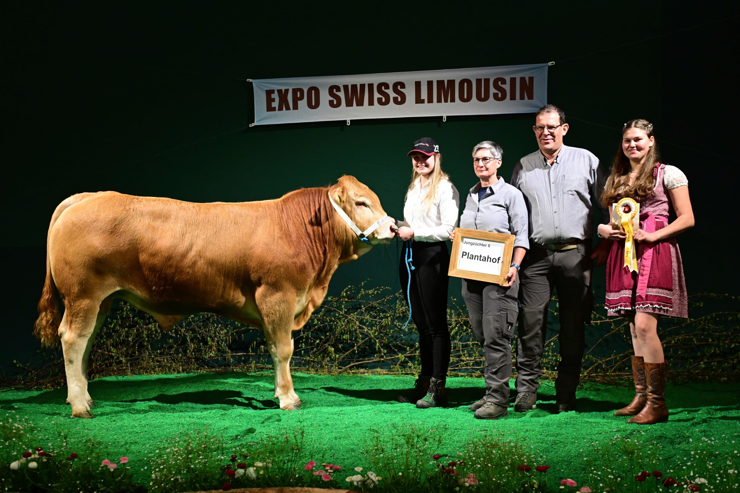 Bei den älteren Jungzüchtern setzte sich Laura Frank, Dagmersellen LU, durch. Sie hat im vergangenen Jahr die Lehre als Landwirtin abgeschlossen, die sie bei Burri’s Limousin gemacht hatte. Sie habe im Ring sowohl Lockerheit wie Ernsthaftigkeit gezeigt, und mache sich bereits im jungen Alter Gedanken zur Vermarktung der Tiere. Zum Zweitplatzierten wurde von Vincent Dumont und Stefan Hodel ein junger Mann gewählt, der derzeit bei Burri’s Limousin im dritten Lehrjahr ist: Levin Stalder. Vom Betrieb Burri mit seinen 60 Mutterkühen sind total acht aktuelle und ehemalige Lernende anwesend und am Helfen bei der Expo Swiss Limousin. Dritter wurde Ramon Baumgartner, der in der Bächtelen die Lehre gemacht hatte und jetzt im Betrieb Galliker in Gunzwil LU angestellt ist. Insgesamt traten acht junge Leute an.