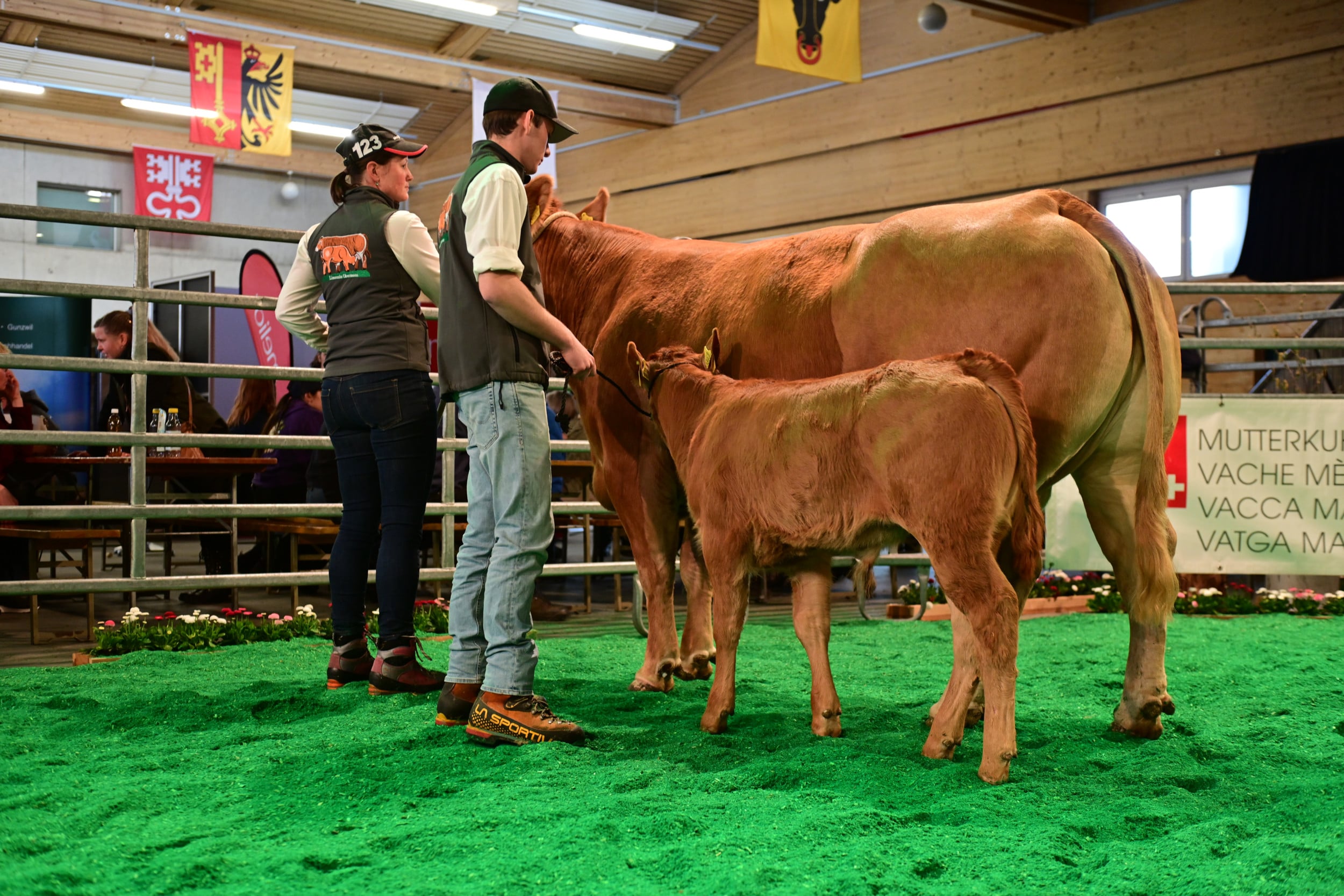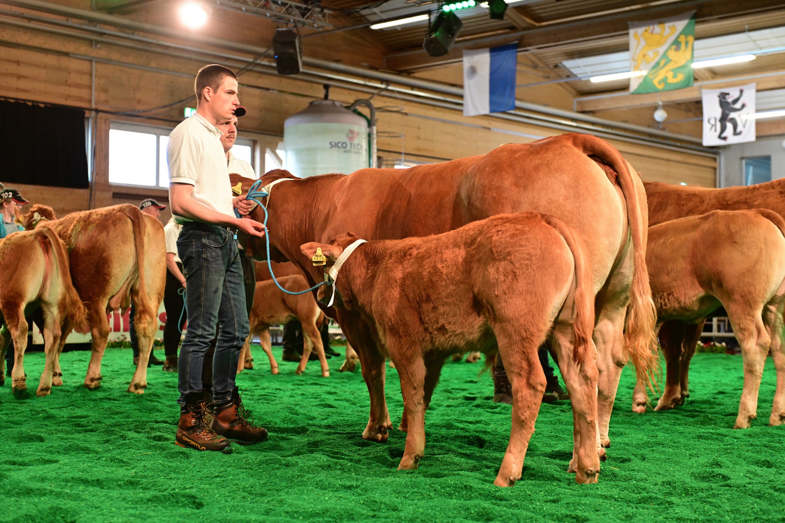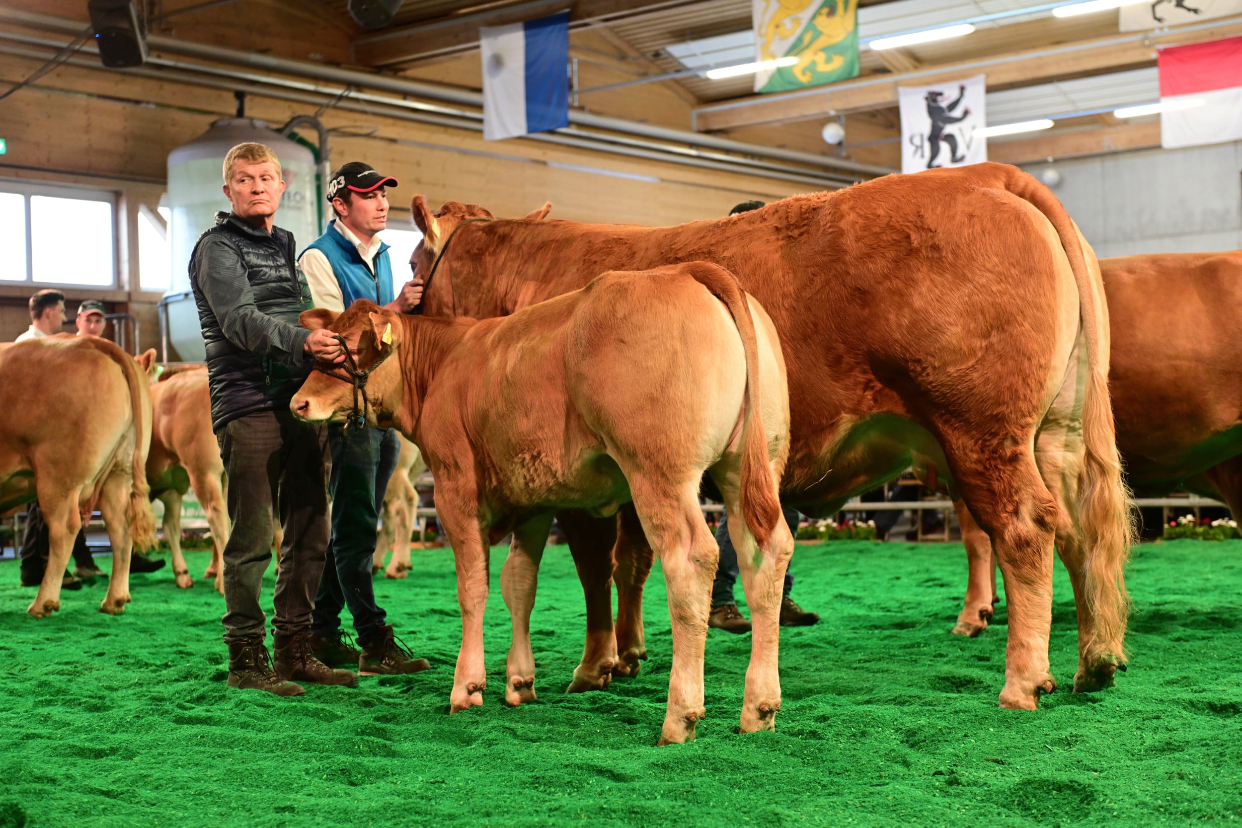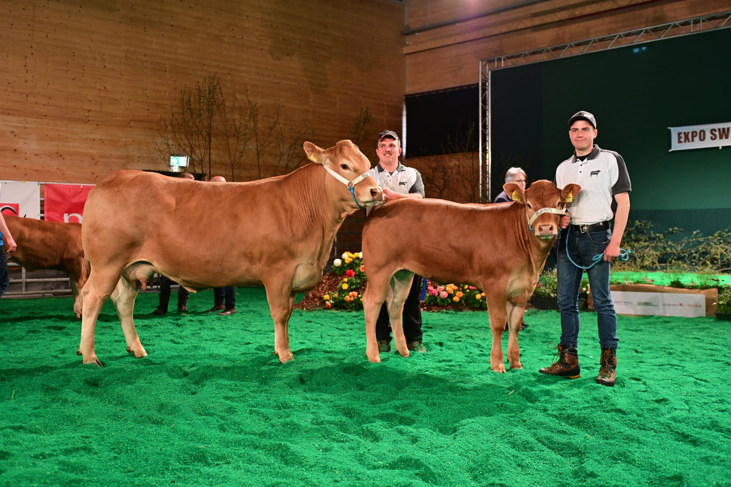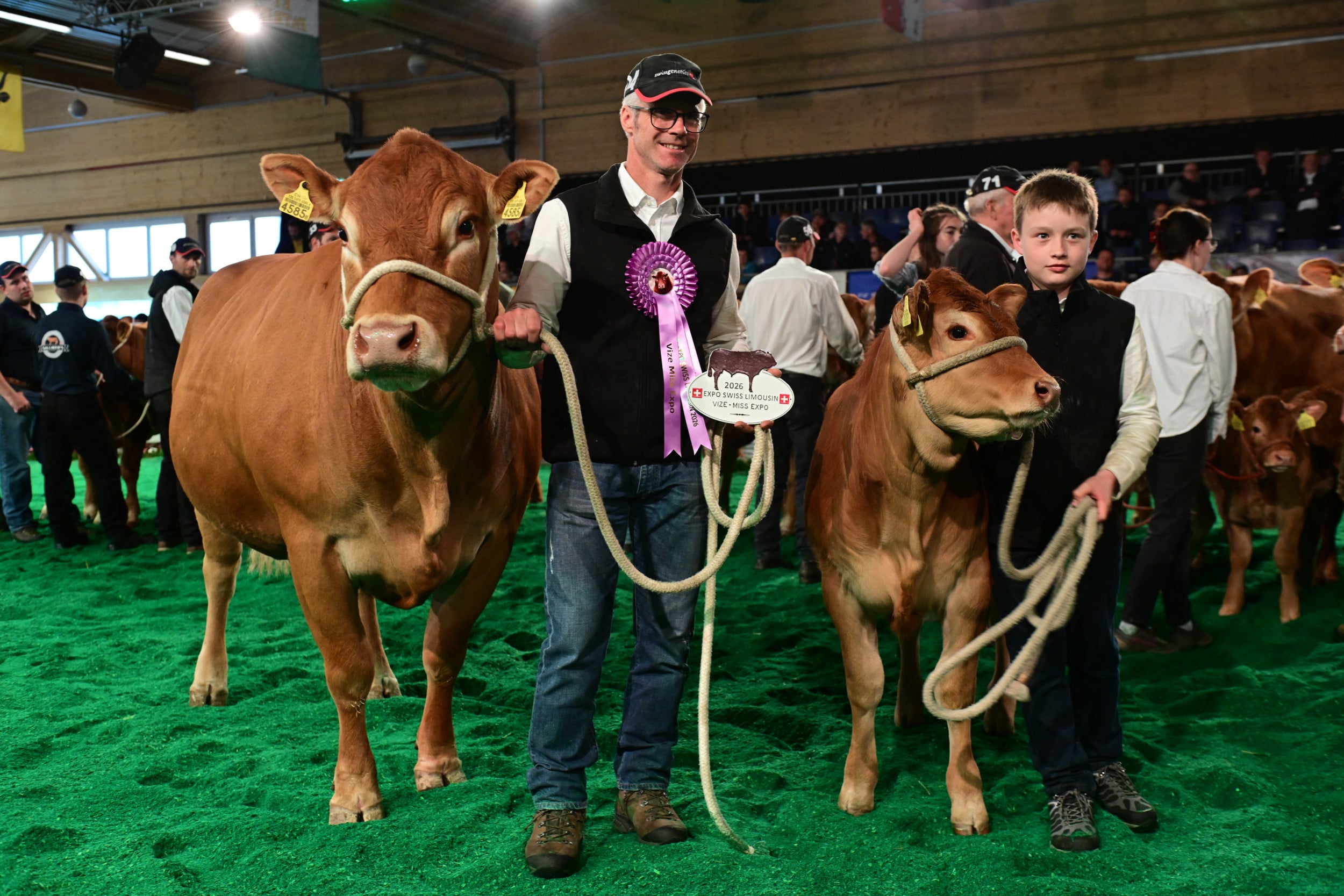 Bei den zwei Jungzüchterkategorien zählt die Qualitat der Vorführung, nicht des Tieres. Die Richter Vincent Dumont und Stefan Hodel zeichneten bei jüngeren Jungzüchtern Dario Wildhaber, Flums SG, vor Leandro Bütler und Maurin Bütler, beide Hämikon LU, aus. Wildhaber sagte im Ring, neben der Limousinzucht habe er kein anderes Hobby. Auch Leandro Bütler hilft auf dem elterlichen Betrieb stark mit und arbeitet gerne mit Holz, er möchte Landwirt werden. Hodel lobte bei Wildhaber die Einheit von Tier und Vorführer, er habe das männliche Jungtier hervorragend präsentiert. Leandro habe sich im Ring sehr entspannt gezeigt, und Maurin habe einen ersten Auftritt gehabt. «Da werden noch einige folgen, und irgendwann steht er wohl als gestandener Mann mit einem Tier an der Swiss Expo Limousin im Ring», so Hodel.