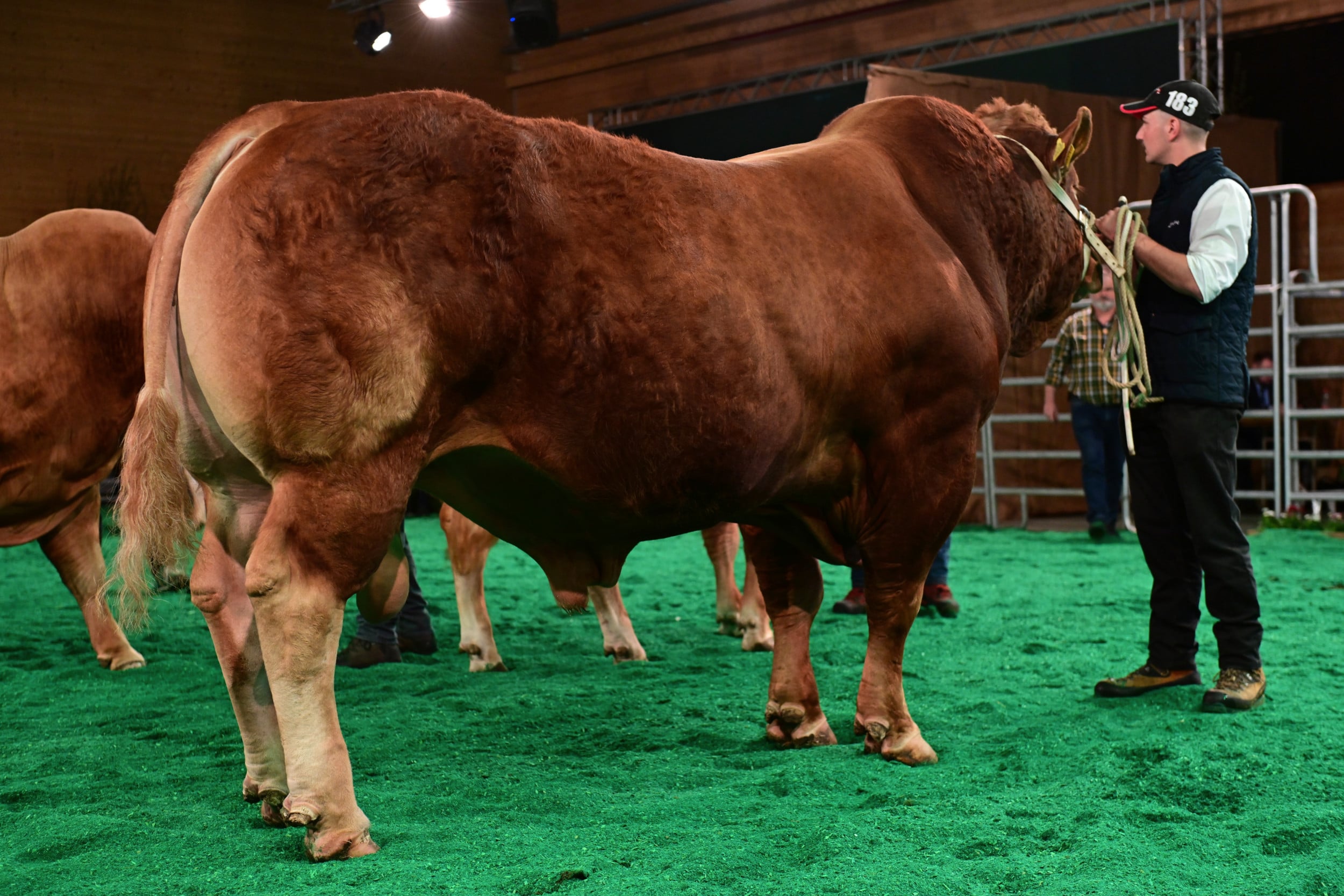Der Richter fand diese Kategorie sehr heterogen aufgrund der unterschiedlichen Vorbereitung der Tiere. Als Sieger kürte er Minders Wictor von Ferme du Bey Sàrl, Elevage Minder aus Avenches VD. Es sei ein unvergleichbares, grosses und breites Tier mit einem langen Rücken und Becken, einer sehr vollen Keule, eine grosse Beckenöffnung und relativ feingliedrig. Als zweiter setzte er Oberhof’s Manillio von Céline Haas aus Ohmstal LU und Dritter wurde Minders Wadi von Ferme du Bey Sàrl, Elevage Minder aus Avenches VD.