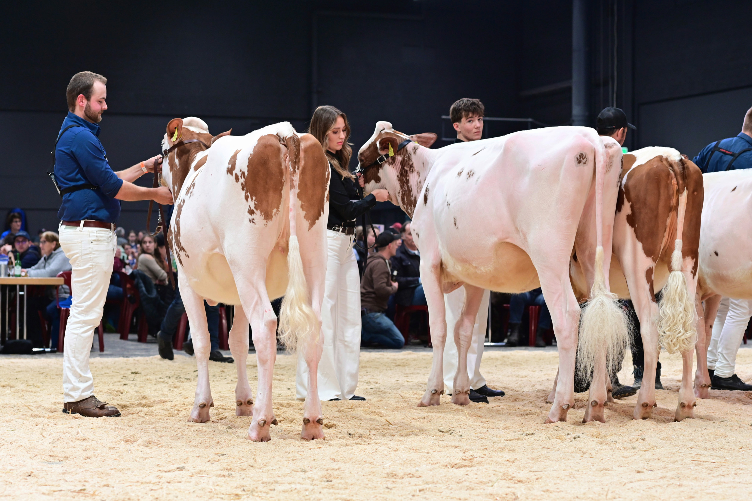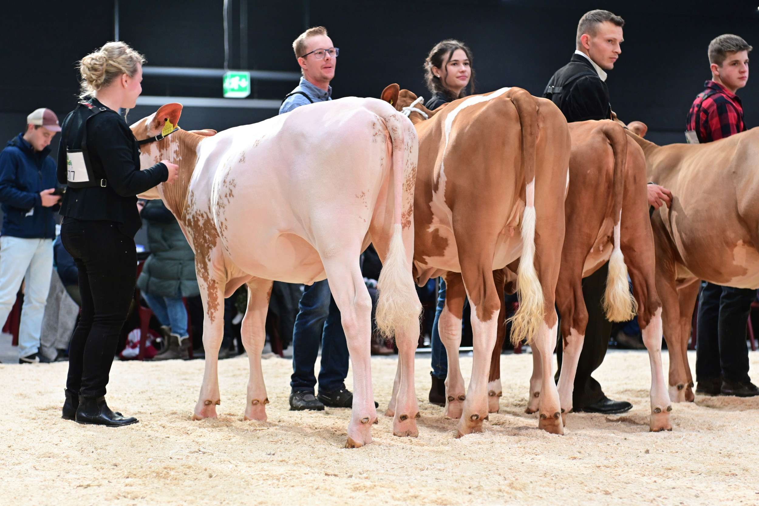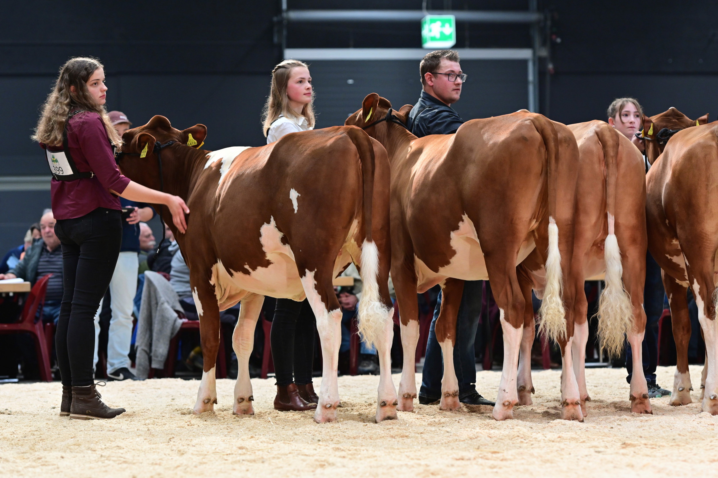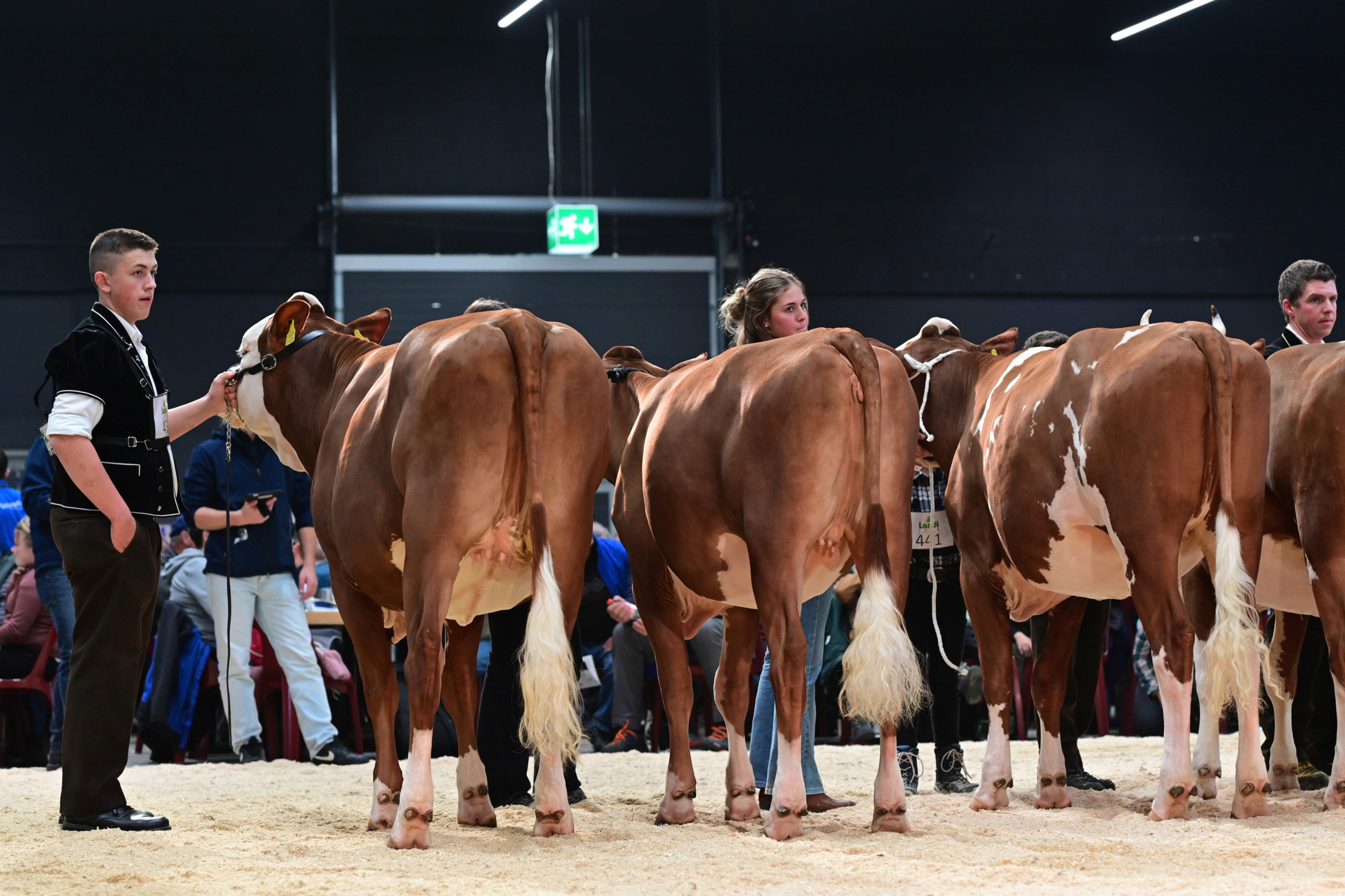Die im Bernbiet stark verbreitete Swiss-Fleckvieh-Rasse kann auf hoffnungsvolle Nachzucht zählen. Die oftmals mittelgrossen und fast gedeckt roten Rinder waren auch im Schlussfinale dabei. Es waren dies Gasser’s Lorbas Perle, Valerie Gasser, Eggiwil BE; WF Tommy Pasteque, Nina Fiechter, Rüderswil BE; Panoramahof Aslan Roswita, Fabian Wampfler, Schönried BE; Stuckis Leonard Hanova, Christof Stucki, Schangnau BE; Bigler’s Elias Pepita, Eric Yersin, Rougemont VD, und Bigler’s Lorbas Rosalie, Darina Bigler, Mamishaus BE.