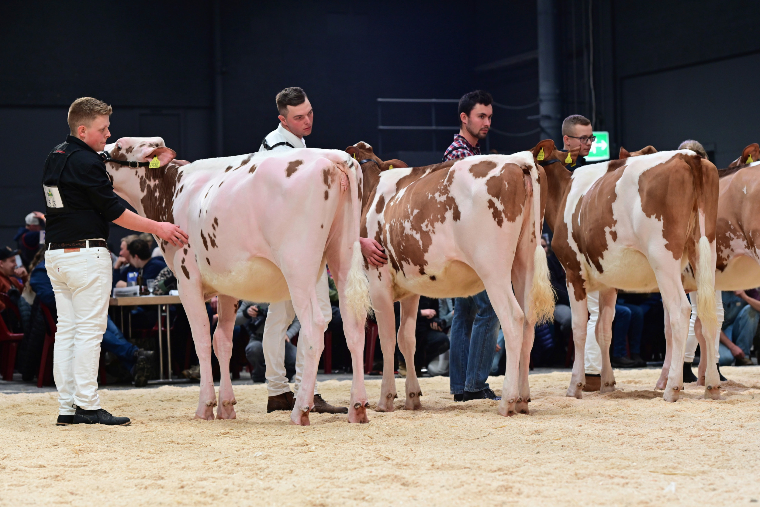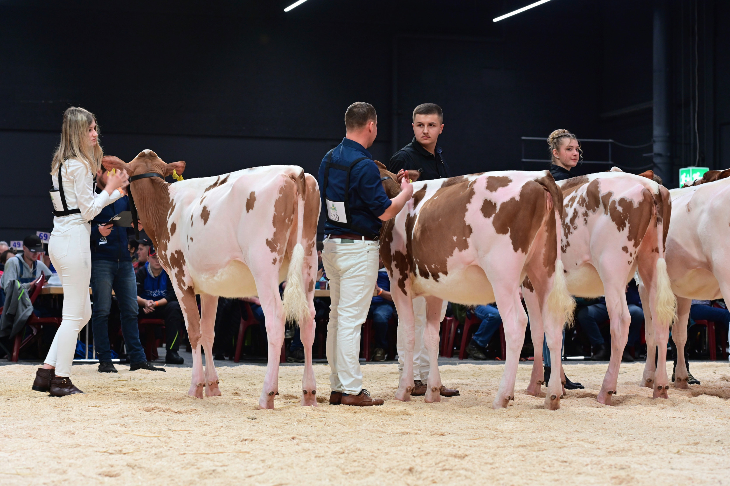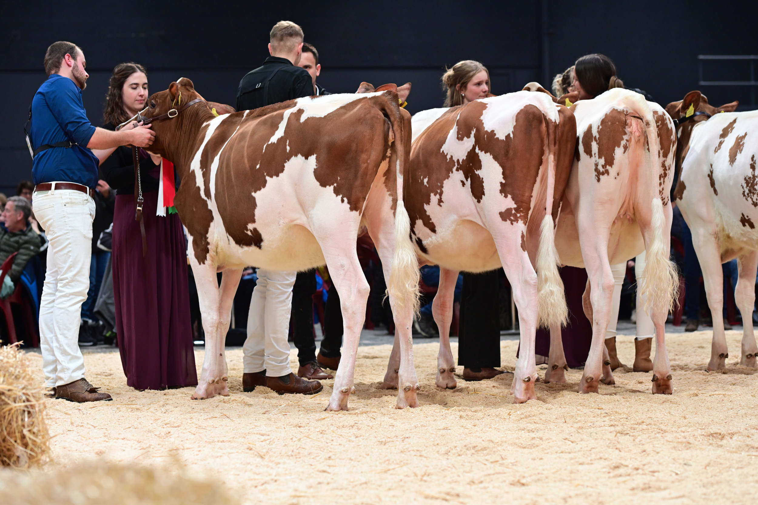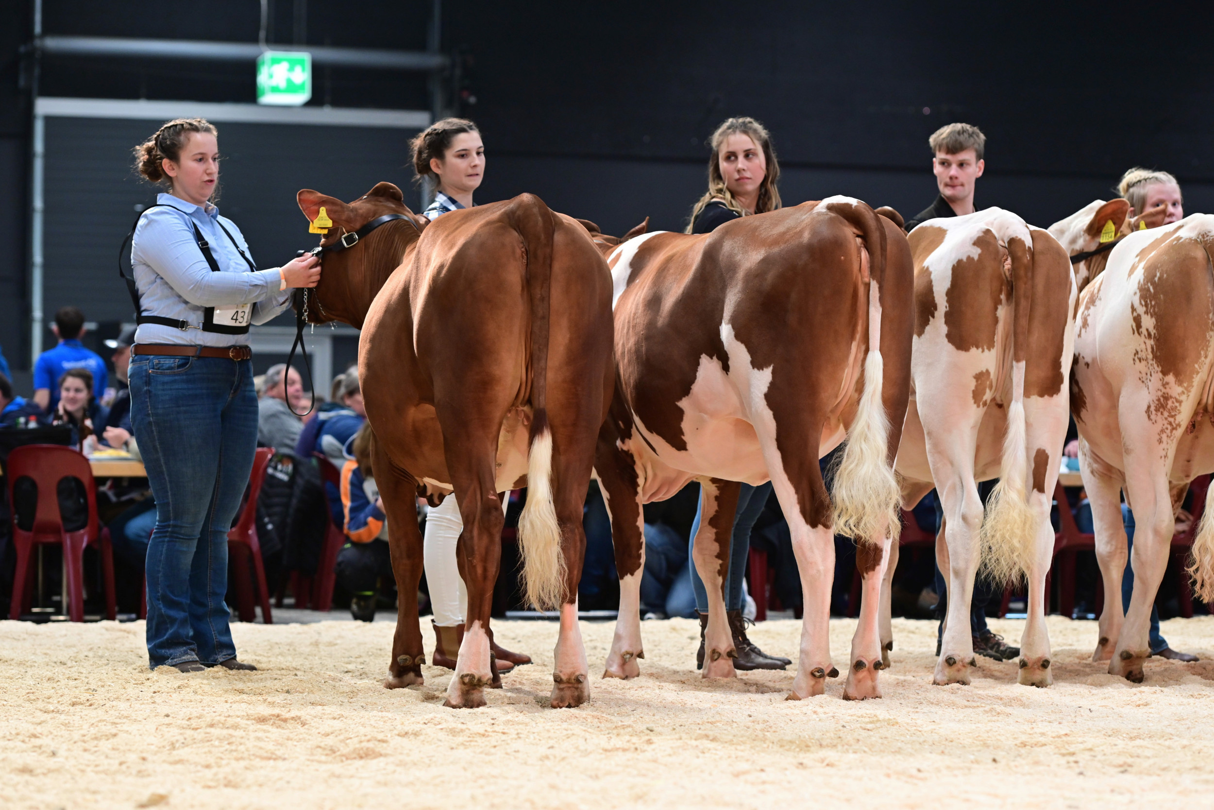 Die im Bernbiet stark verbreitete Swiss-Fleckvieh-Rasse kann auf hoffnungsvolle Nachzucht zählen. Die oftmals mittelgrossen und fast gedeckt roten Rinder waren auch im Schlussfinale dabei. Es waren dies Gasser’s Lorbas Perle, Valerie Gasser, Eggiwil BE; WF Tommy Pasteque, Nina Fiechter, Rüderswil BE; Panoramahof Aslan Roswita, Fabian Wampfler, Schönried BE; Stuckis Leonard Hanova, Christof Stucki, Schangnau BE; Bigler’s Elias Pepita, Eric Yersin, Rougemont VD, und Bigler’s Lorbas Rosalie, Darina Bigler, Mamishaus BE.
