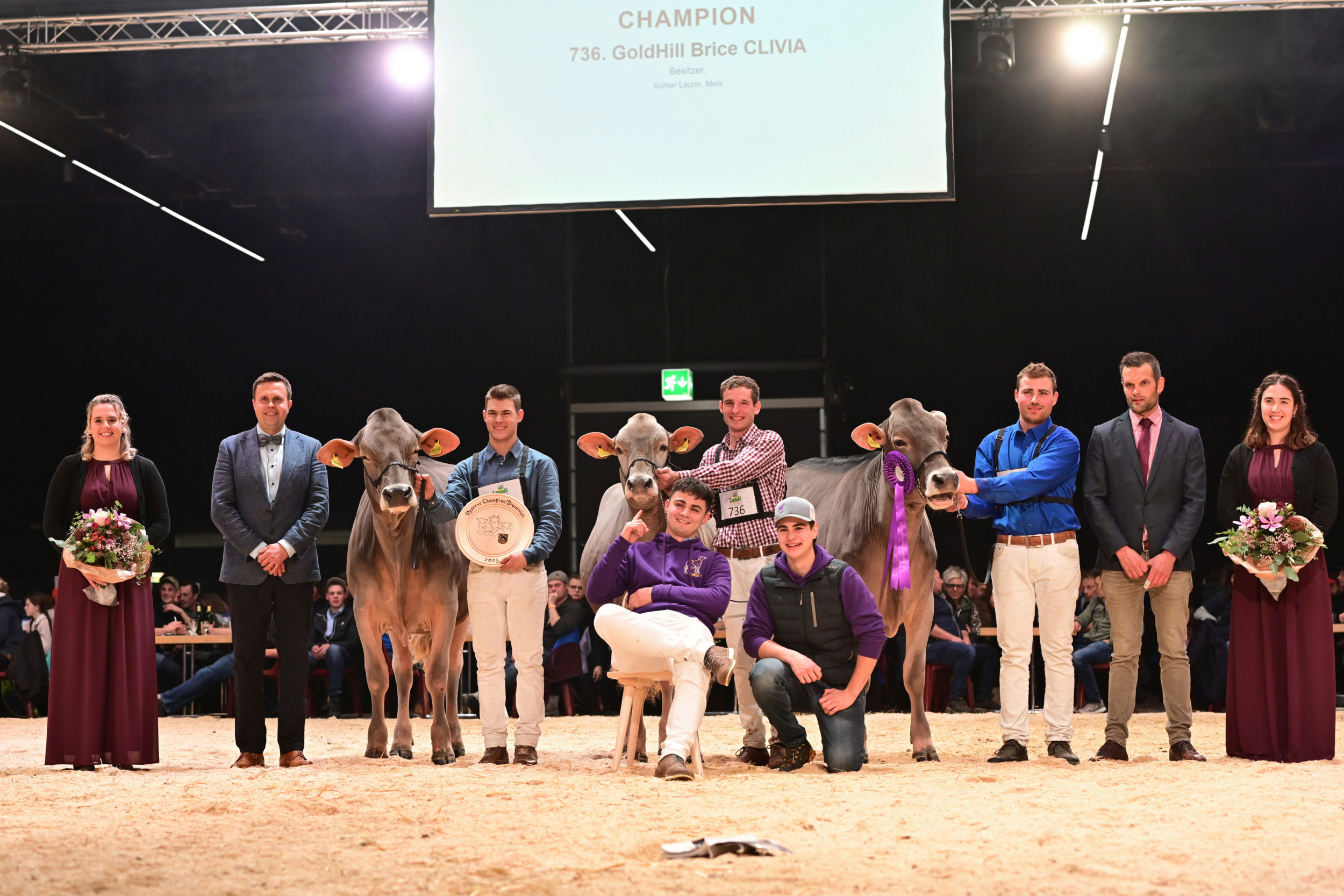 Nicht nur bei Original Braunvieh, sondern auch bei Brown Swiss hatten die Einheimischen einen schweren Stand. Starke Rinder aus der Zentral- und Ostschweiz stahlen ihnen die Show. Das Rennen machte das stylische Spitzenrind GoldHill Brice Clivia, ausgestellt von Laurin Kohler aus Mels SG. Das Championrind holte kürzlich an der Junior Expo Aargau einen Kategoriensieg. Als Besitzer des Rindes sind die Three-Salzgeber aus Pany GR aufgeführt. Als Kalb verliess es den GoldHill-Zuchtstall von Florian Pfulg und ist seither im Kanton Graubünden zuhause. Richter Clivia geht auf GoldHill Simbaboy Caluna zurück, die wohl eine der einflussreichsten Stierenmütter bei Swissgenetics ist.