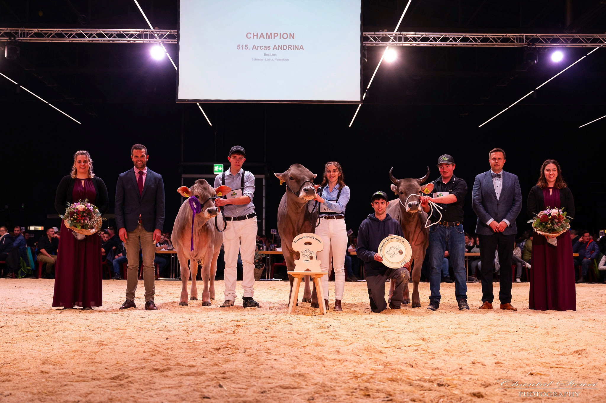 In drei Kategorien traten die Original-Braunvieh-Rinder gegeneinander an. Im Finale gingen die Berner Jungzüchter und Jungzüchterinnen mit ihren Tieren leer aus. Es gewann die 26-monate alte Arcas Andrina, ausgestellt von Larina Bühlmann, Neuenkirch LU, und aus der Zucht von Fabian Kempf, Schwarzenberg LU. Andrina stammt aus einer langlebigen Kuhfamilie, ihre Mutter ist eine Rubio-Tochter.