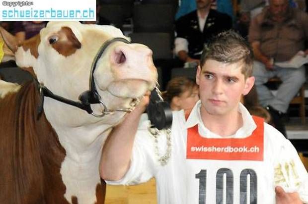 Uran Paula wird nicht vom Besitzer Fritz Fankhauser, sondern von Schwager Markus Rüegsegger im Ring präsentiert. -