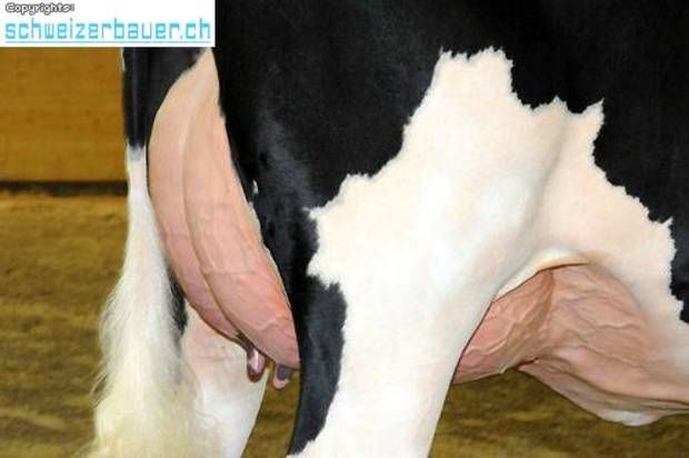 Das wunderschöne Euter von Blackgold Elba, Siegerin Kategorie 2, von Bernhard Gertsch aus Frutigen. -